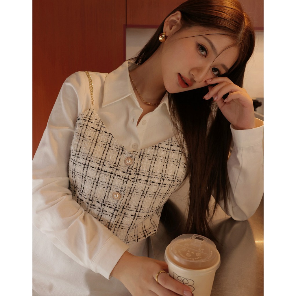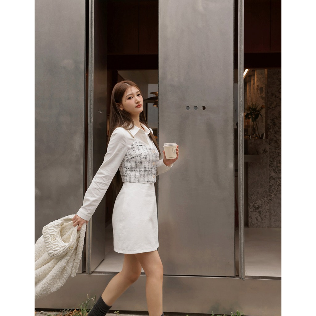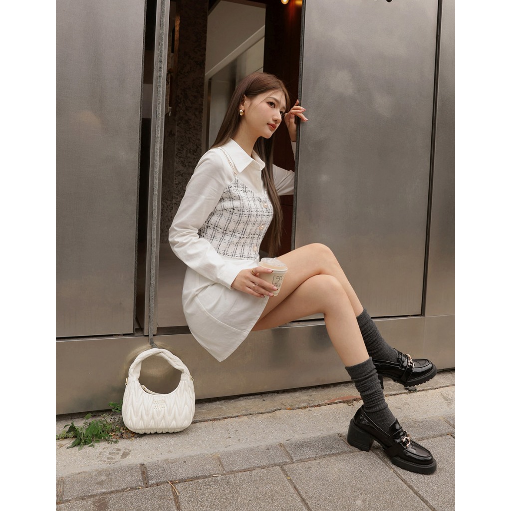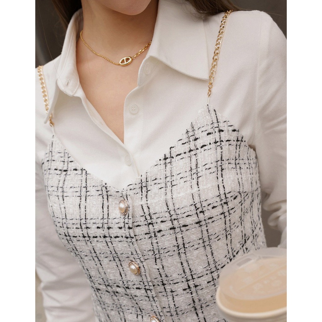 AIR SPACE 小香金鍊格紋襯衫短洋裝(白) 女裝 現貨白,S|白,M|白,LAIR SPACE