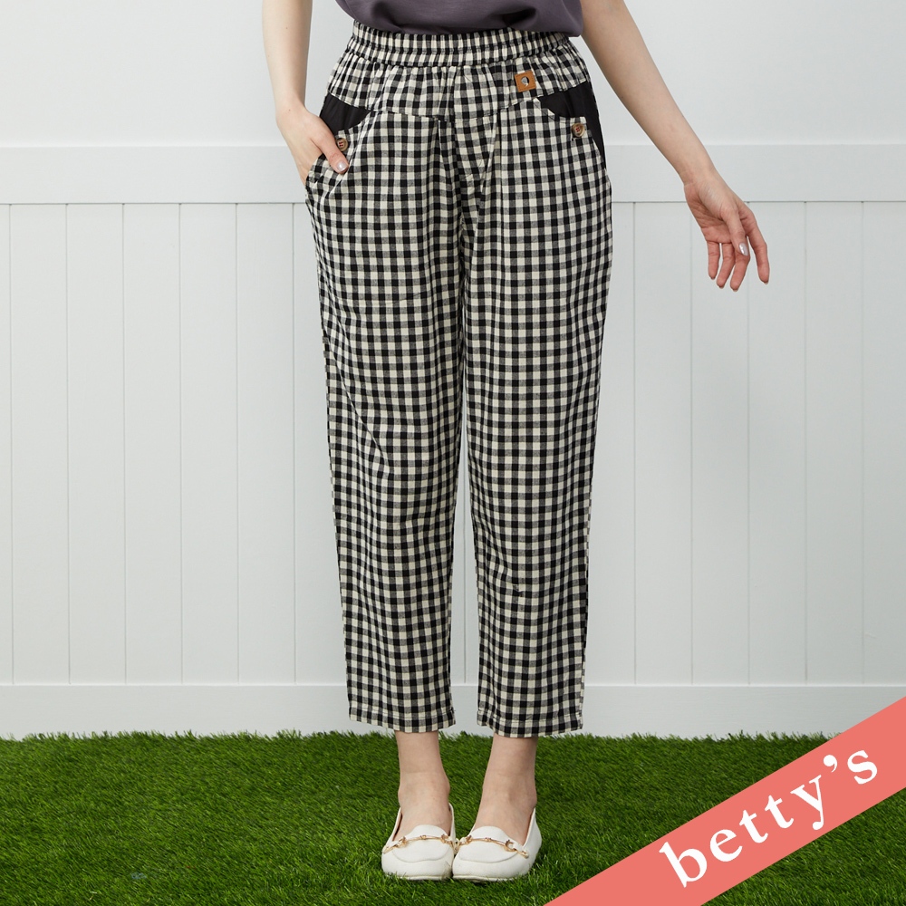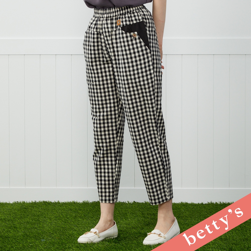 betty’s貝蒂思(41)格紋口袋拼接鈕釦休閒長褲(黑色)黑色,M|黑色,LPantsbetty’s貝蒂思