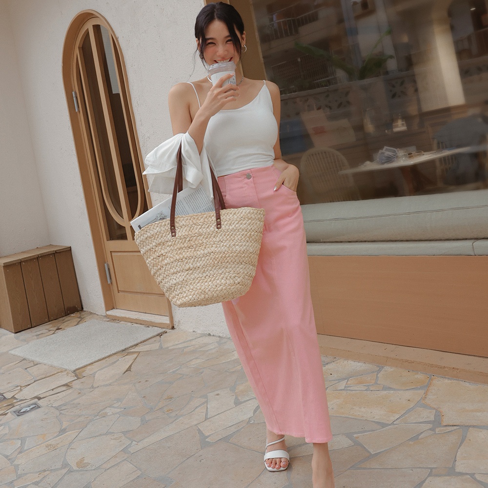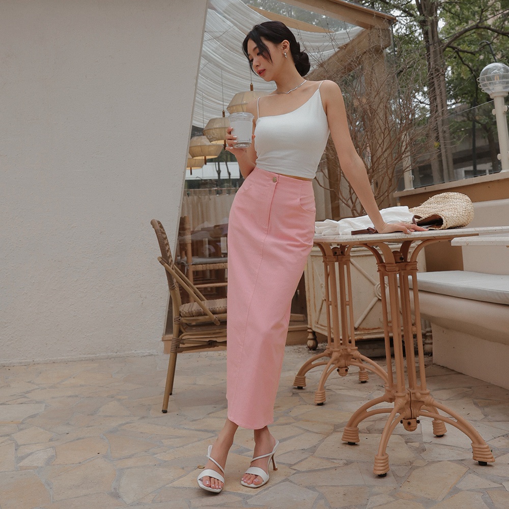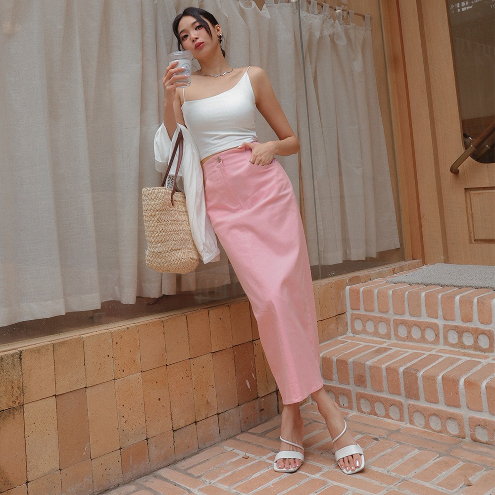 AIR SPACE LADY 無腰頭後開衩直筒長裙(杏/粉紅) 女裝 現貨杏,S|杏,M|杏,L|粉紅,S|粉紅,M|粉紅,LAIR SPACE