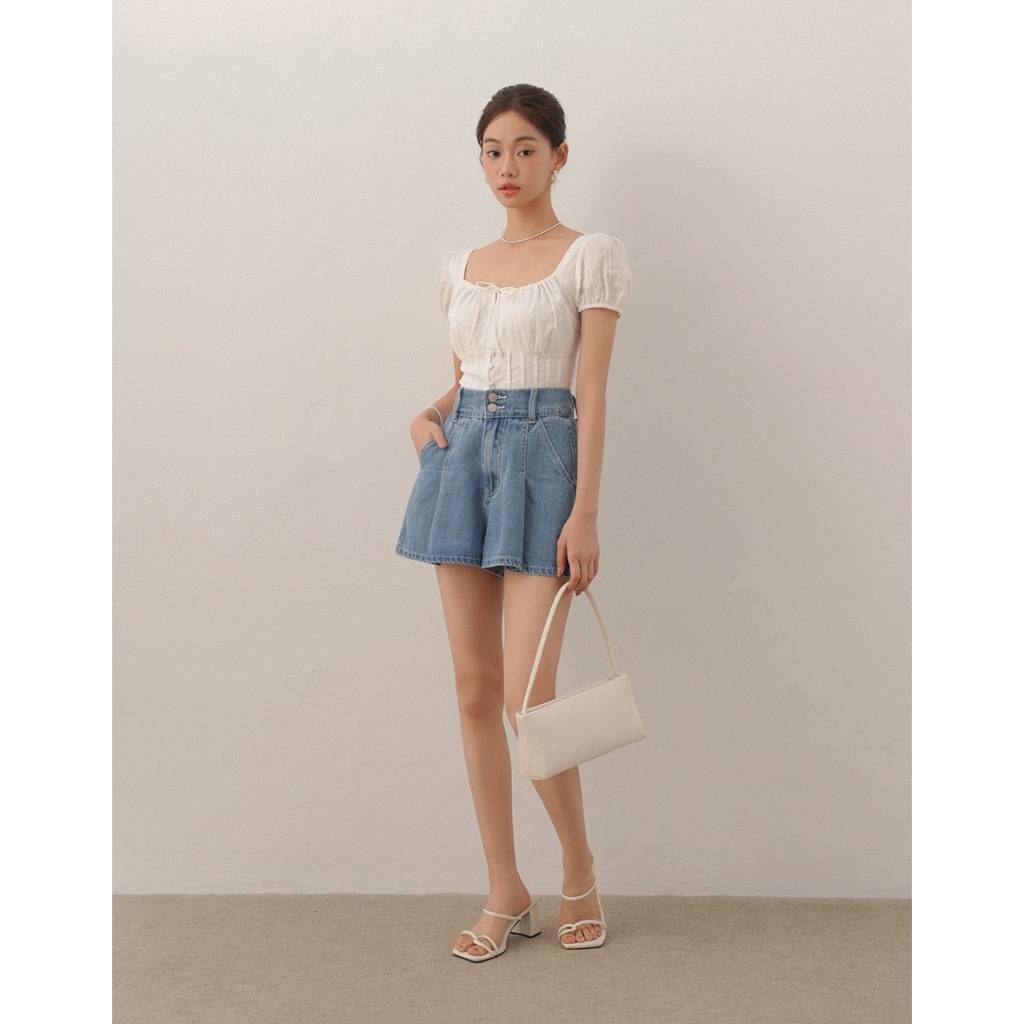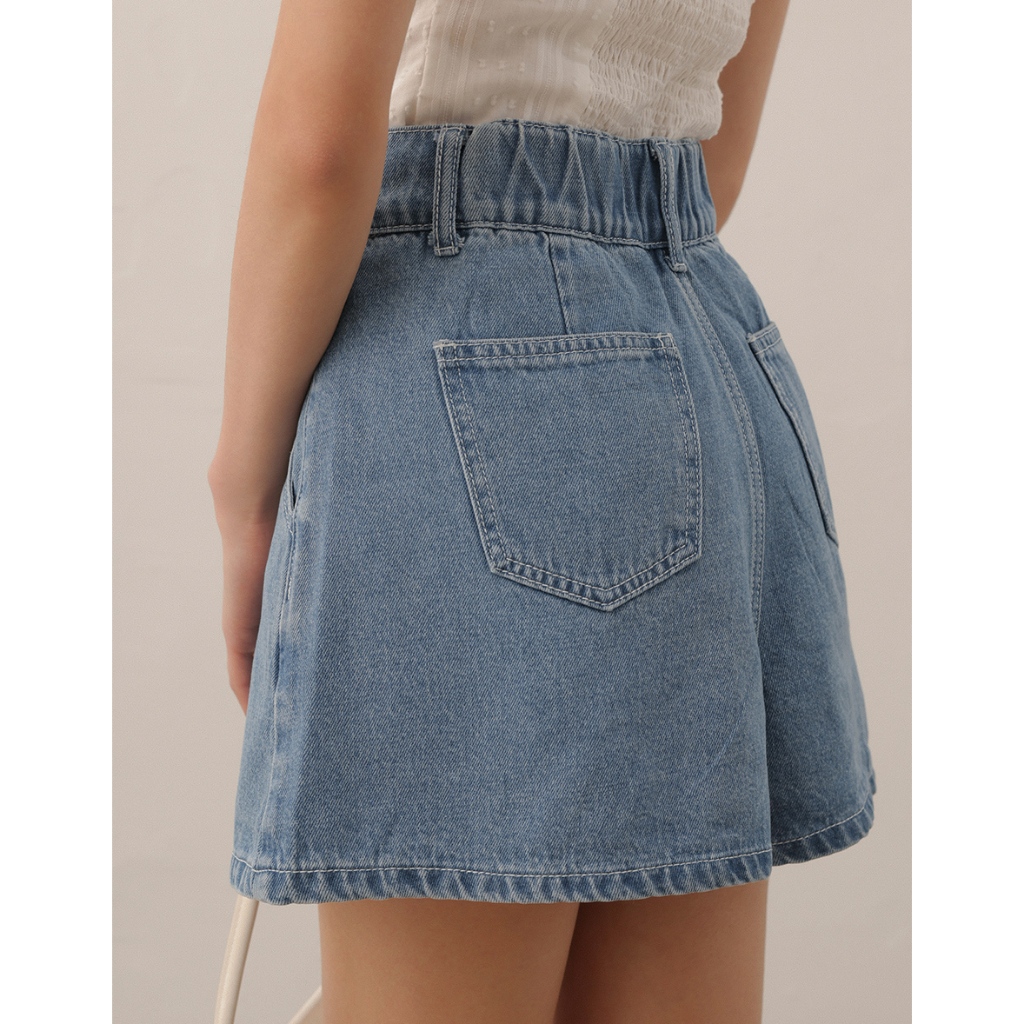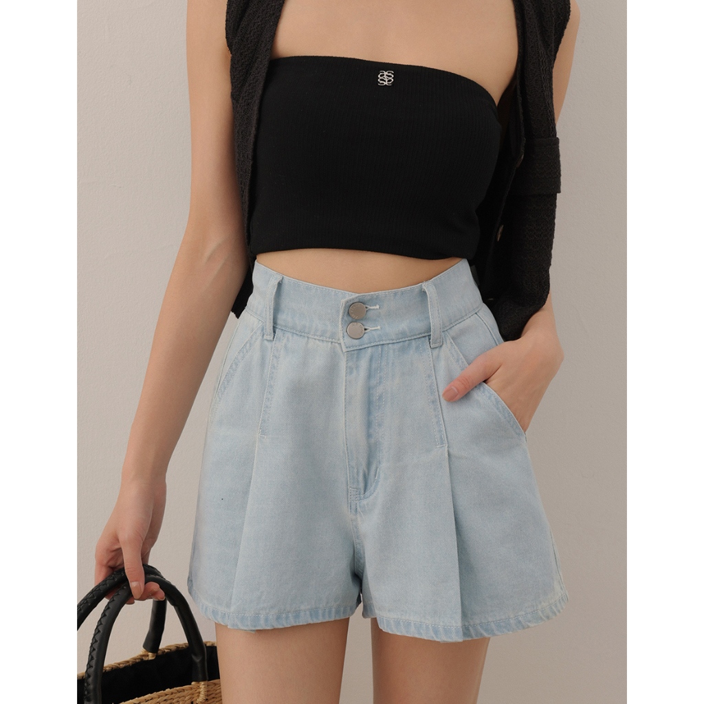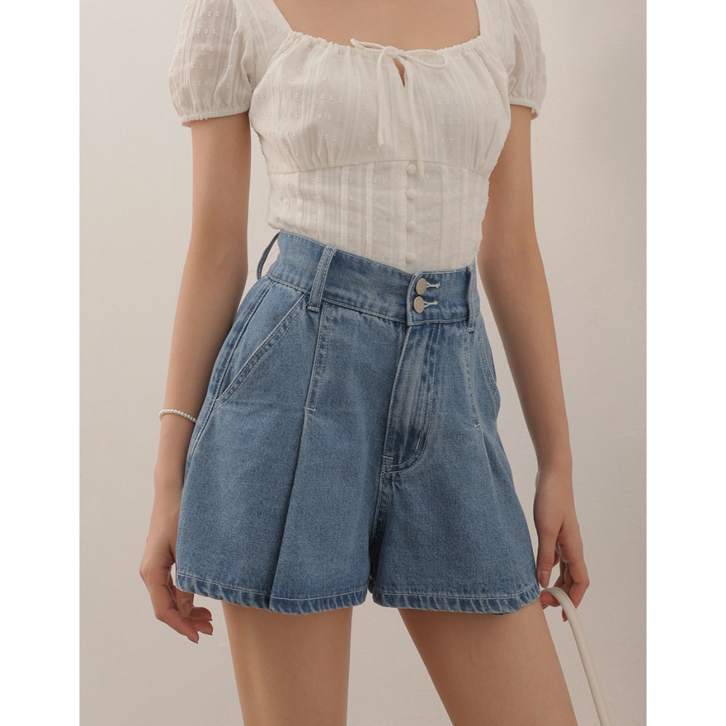 AIR SPACE PLUS 高腰雙釦前打摺牛仔短褲(藍/深藍) 女裝 現貨 大尺碼 中大尺碼藍,XL|藍,2XL|藍,3XL|深藍,XL|深藍,2XL|深藍,3XLShortsAIR SPACE