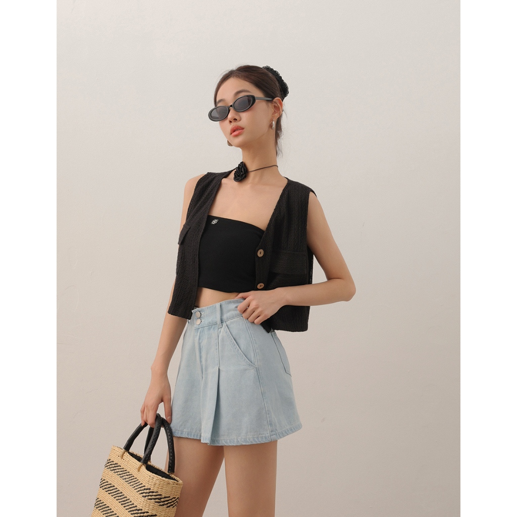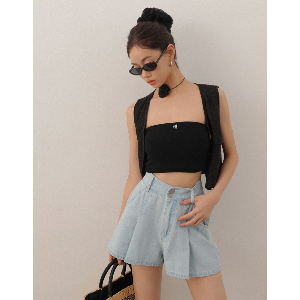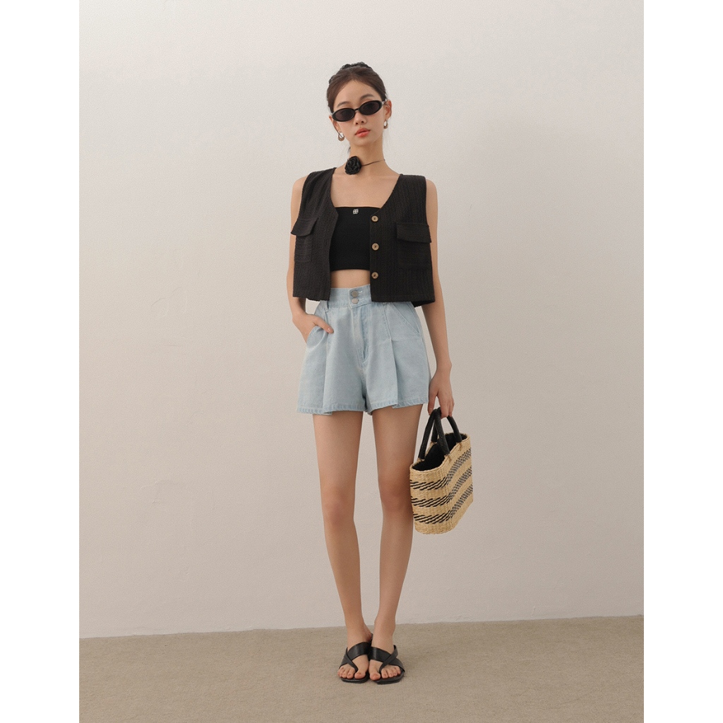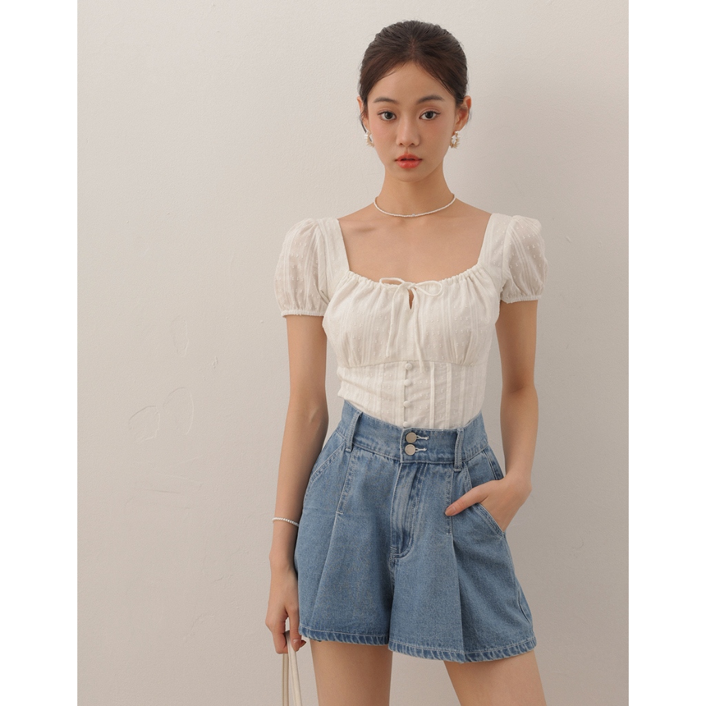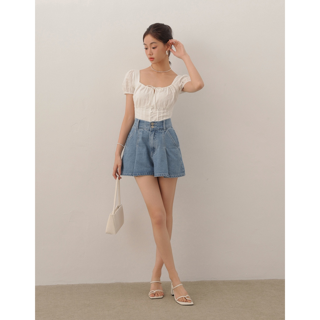 AIR SPACE PLUS 高腰雙釦前打摺牛仔短褲(藍/深藍) 女裝 現貨 大尺碼 中大尺碼藍,XL|藍,2XL|藍,3XL|深藍,XL|深藍,2XL|深藍,3XLShortsAIR SPACE