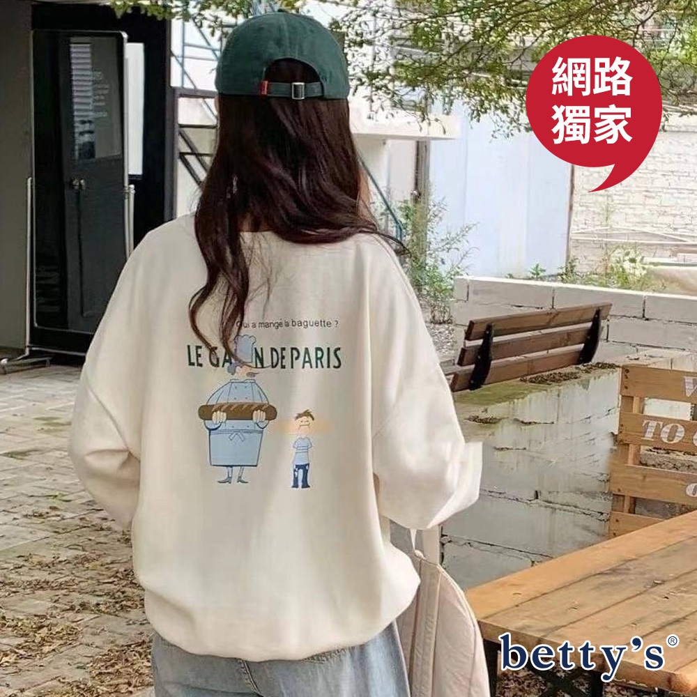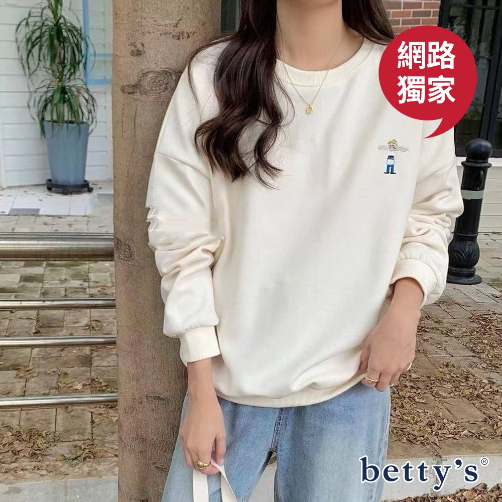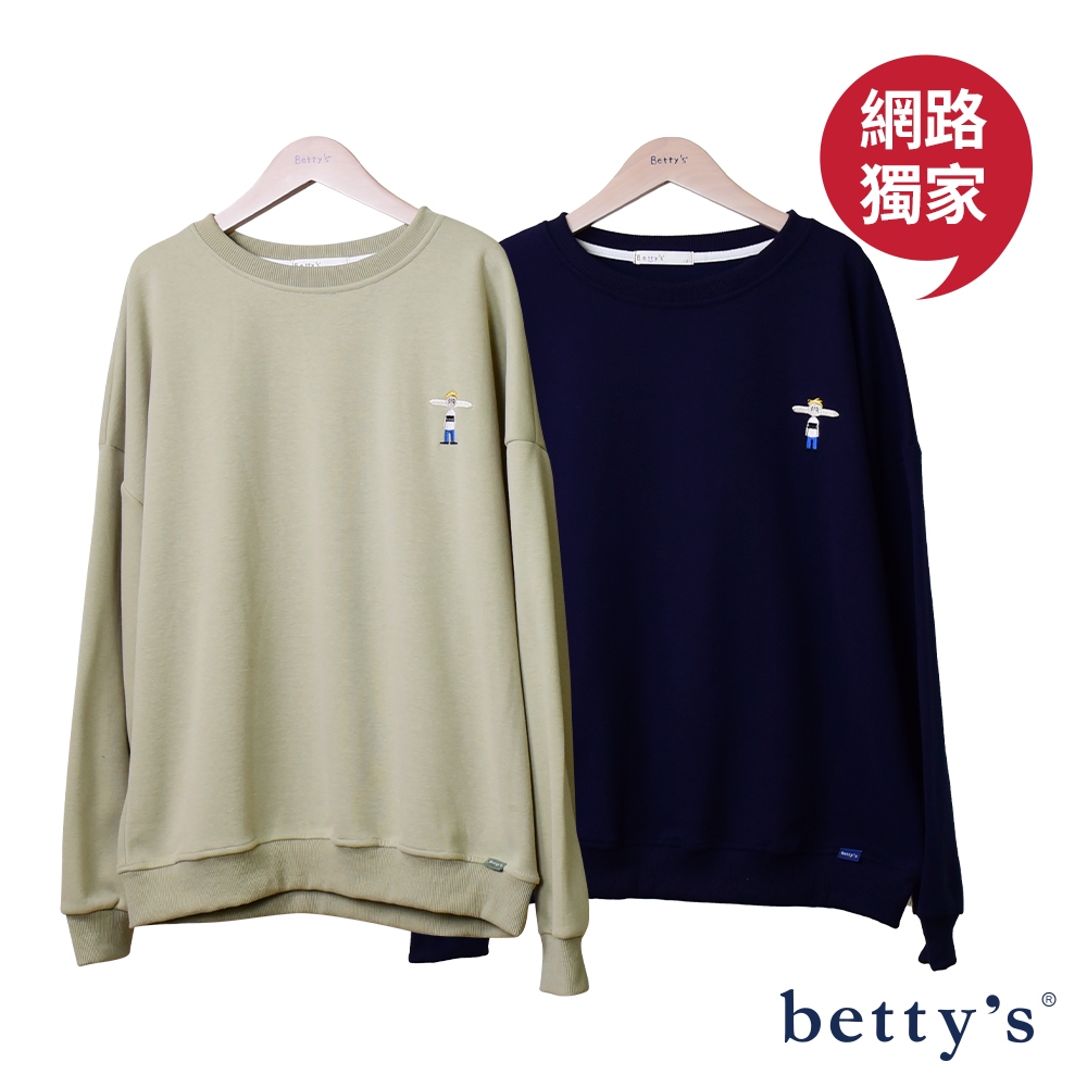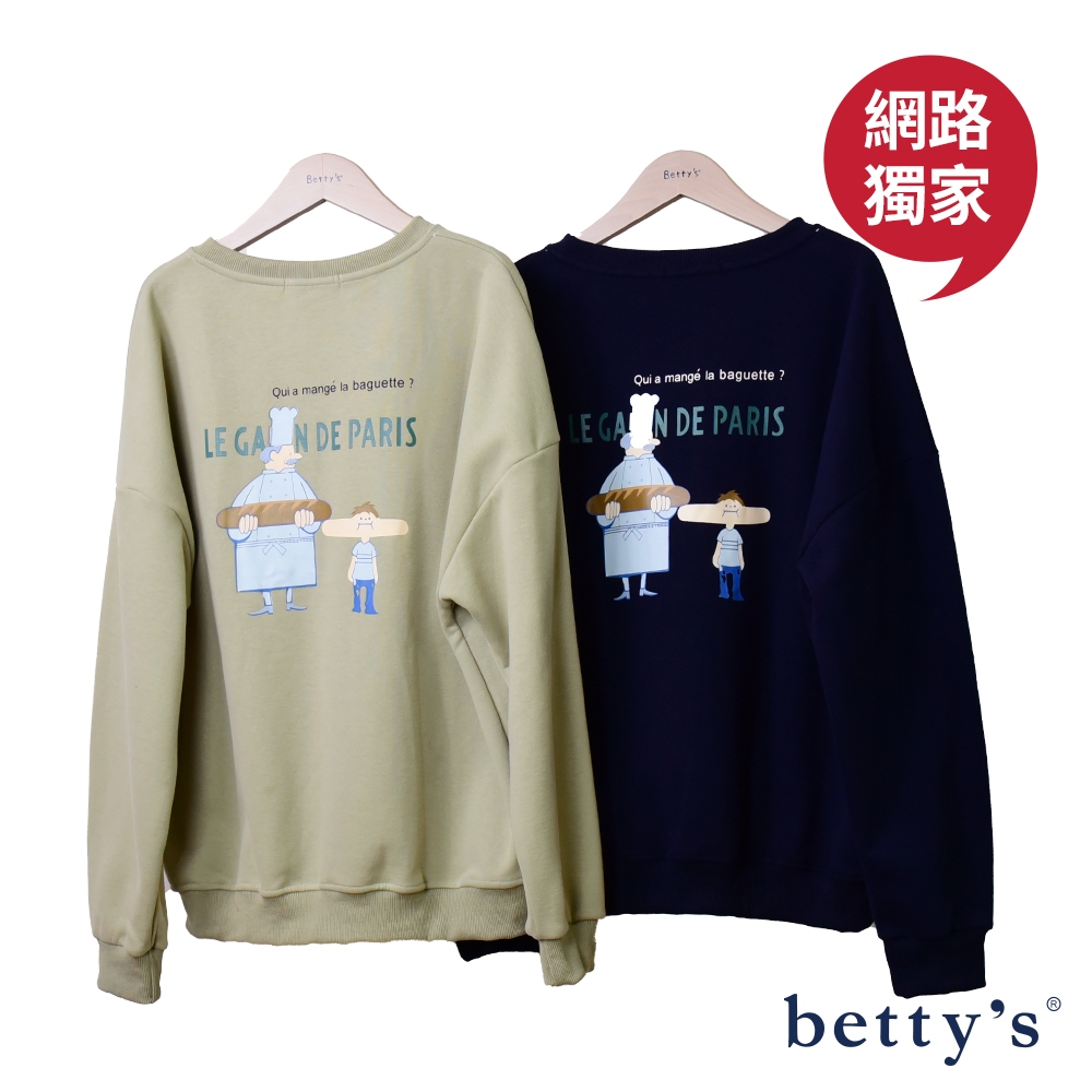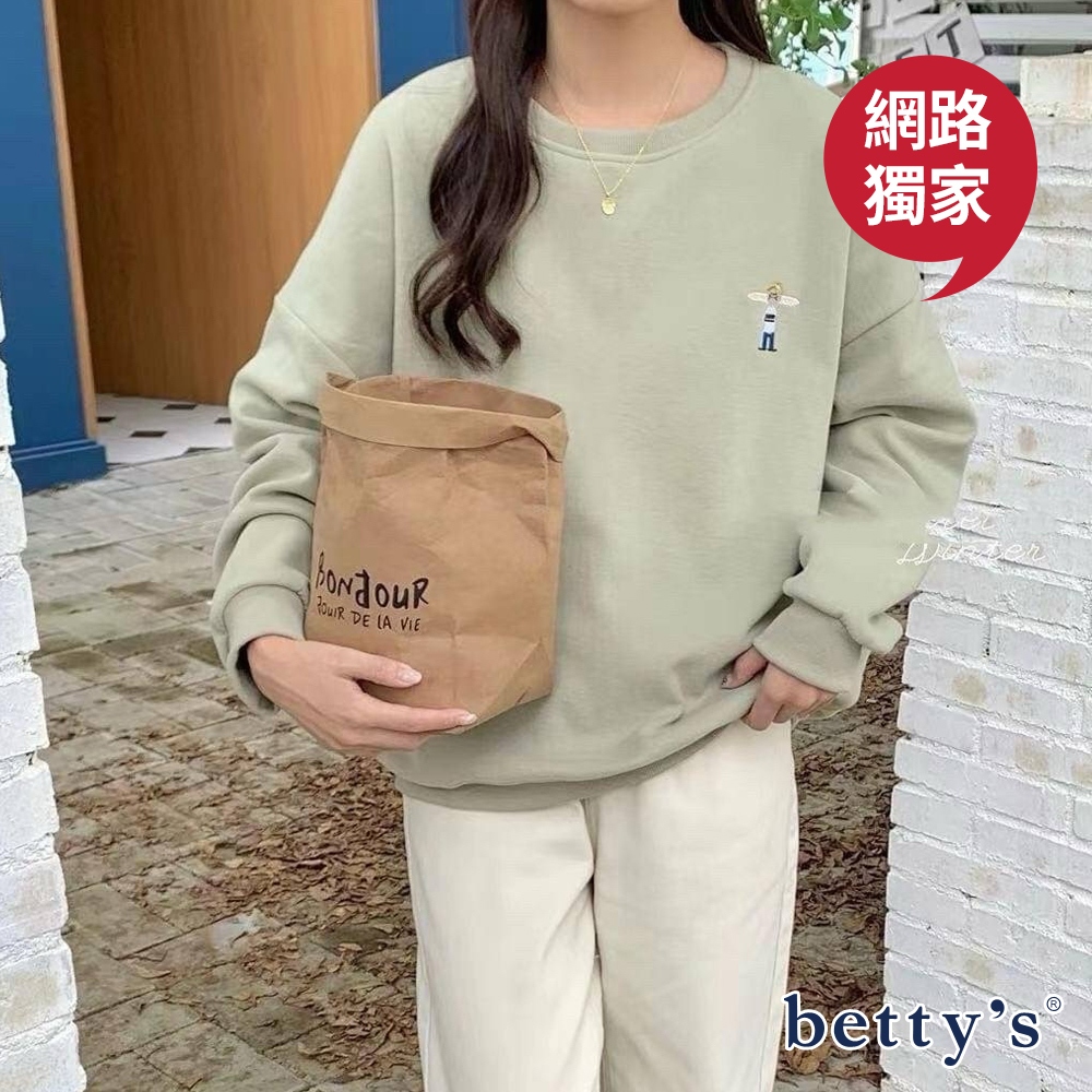 betty’s貝蒂思(23)麵包男孩刺繡印花內刷毛大學T(共三色)綠色,F|深藍,F|米白,FSweatshirtsbetty’s貝蒂思