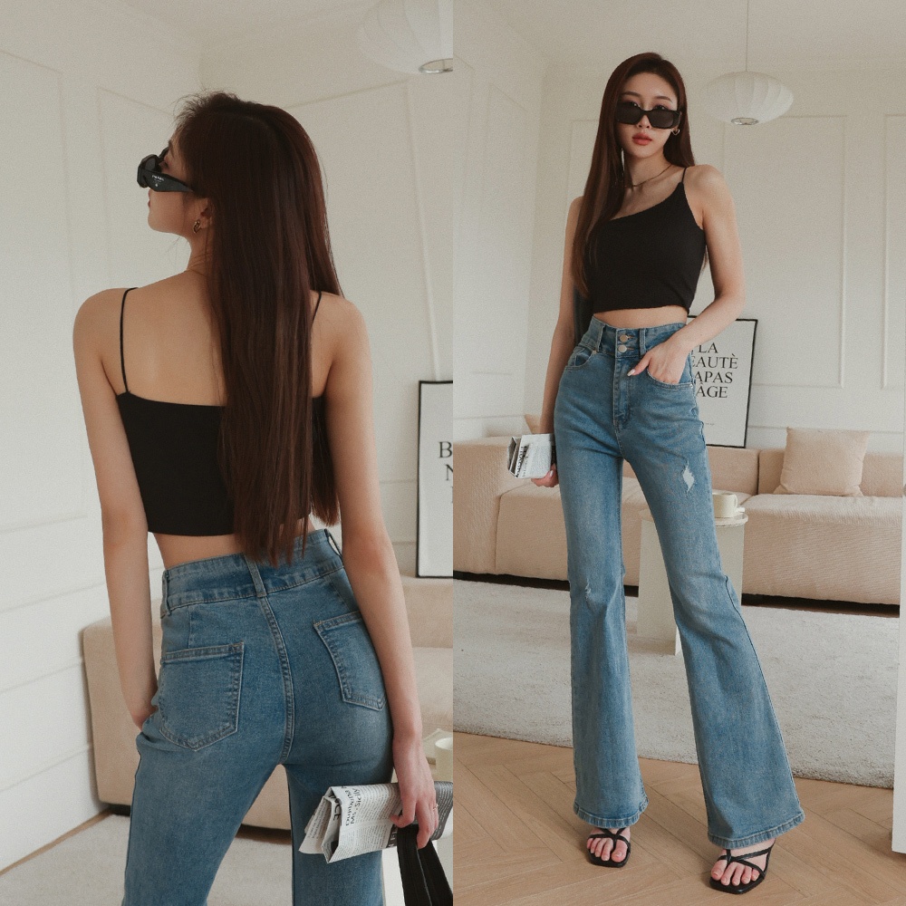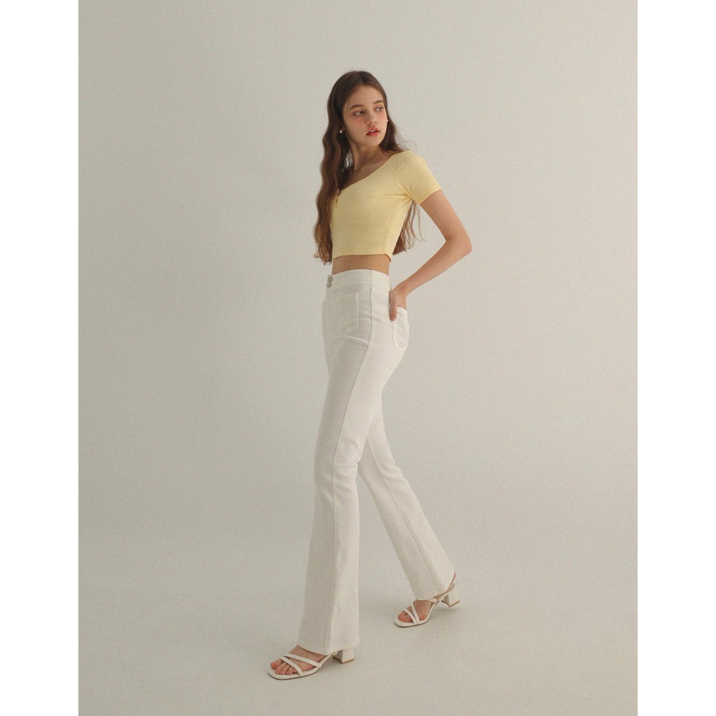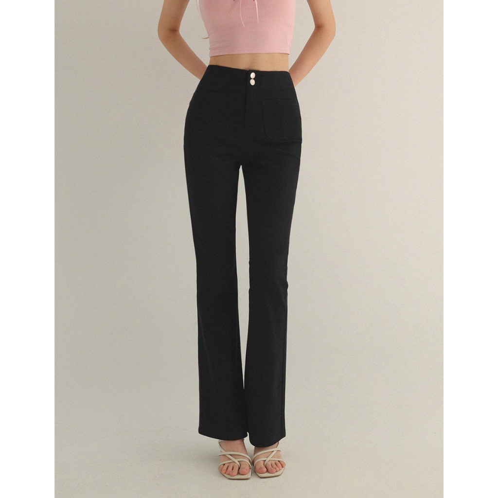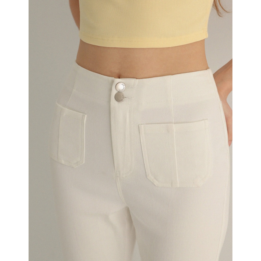 AIR SPACE 雙口袋排釦喇叭牛仔褲(黑/白) 女裝 現貨黑,S|黑,M|黑,L|白,S|白,M|白,LAIR SPACE