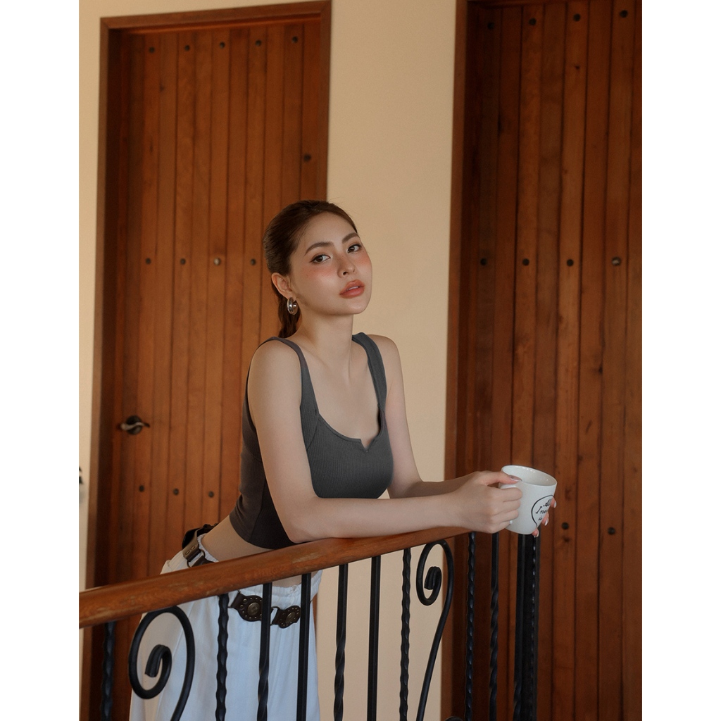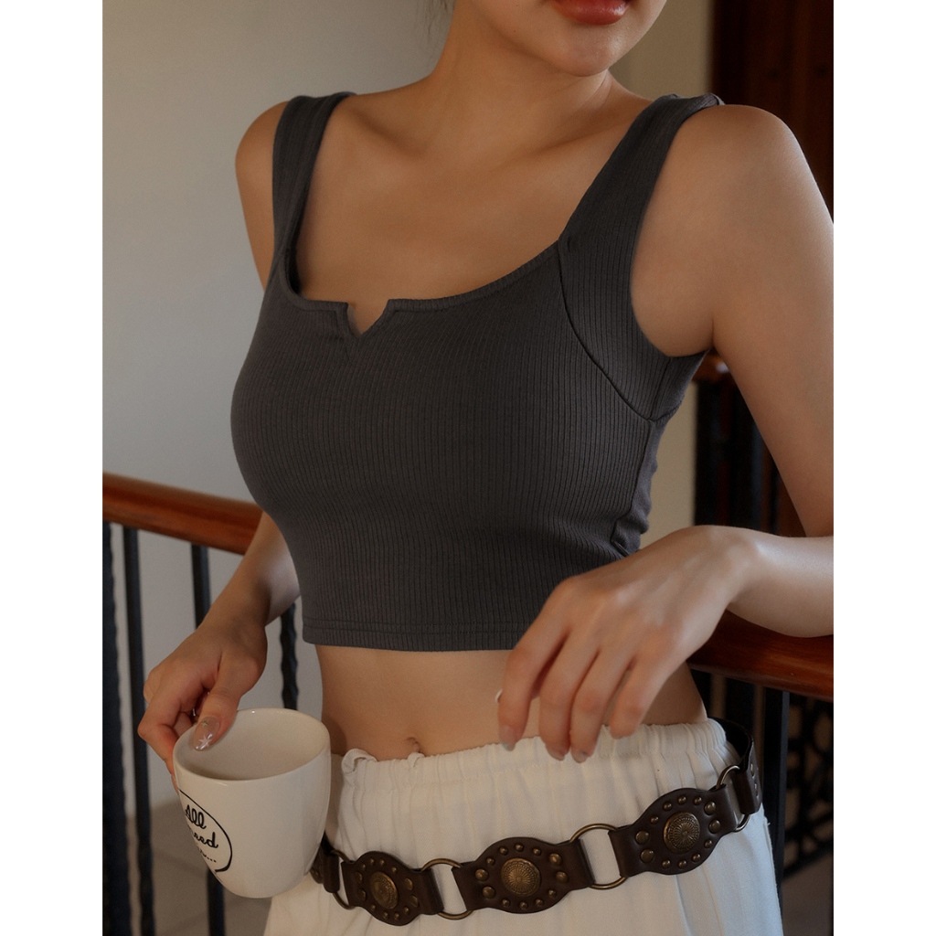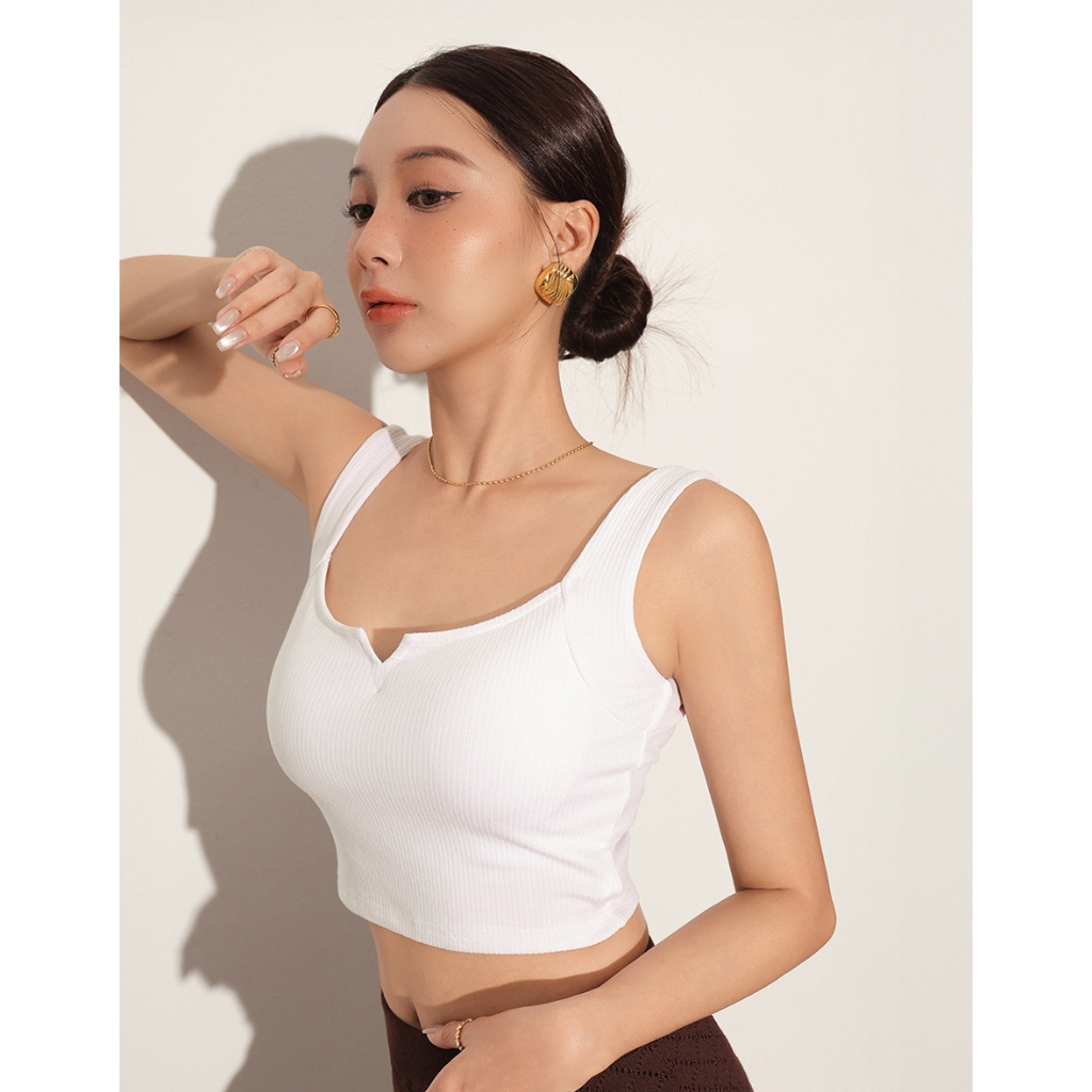 AIR SPACE LADY 小V切口羅紋寬肩帶BRA TOP(白/深灰) 女裝 現貨白,S|白,M|白,L|深灰,S|深灰,M|深灰,LOthersAIR SPACE