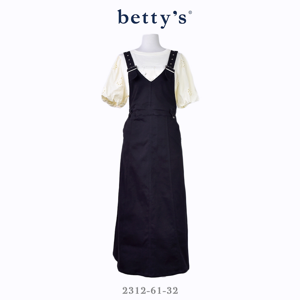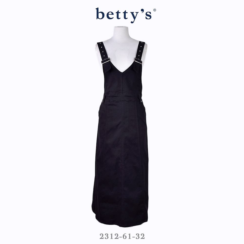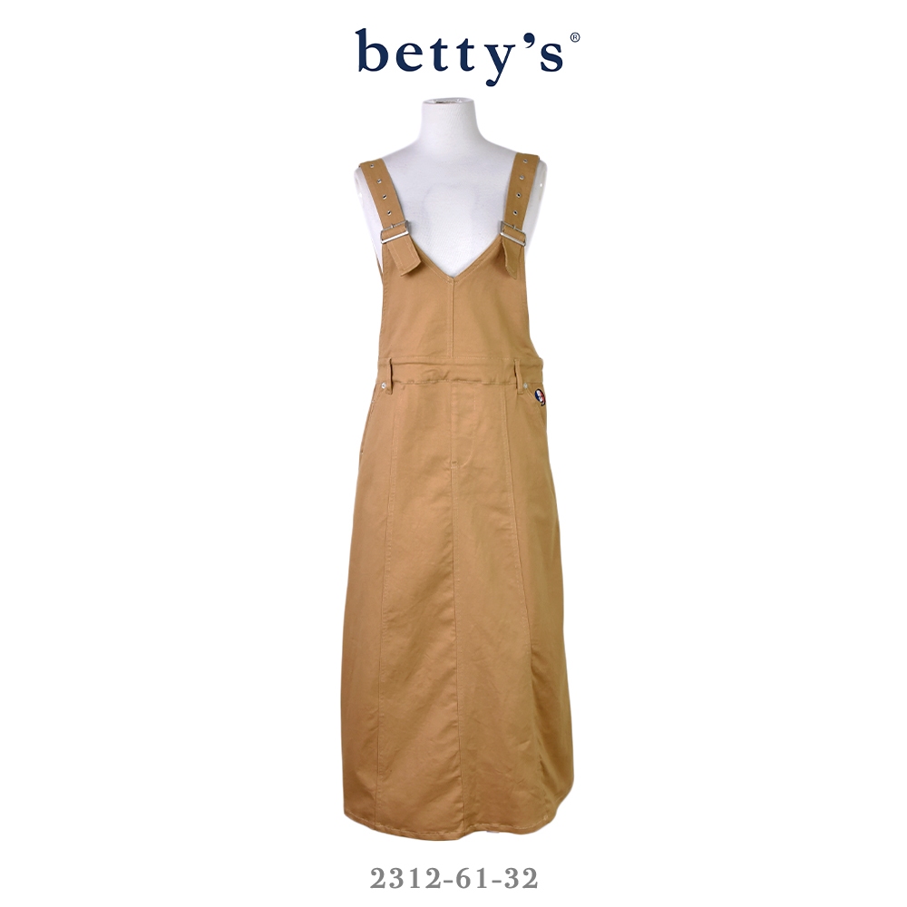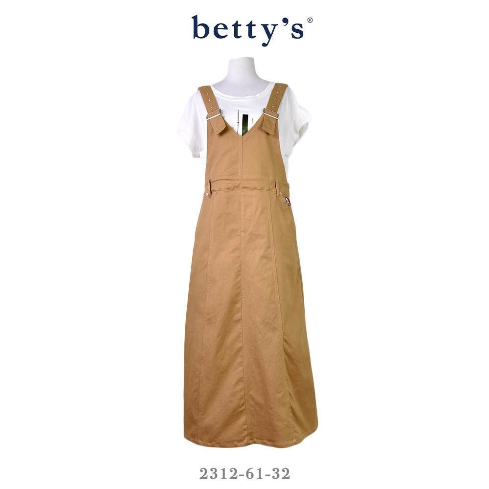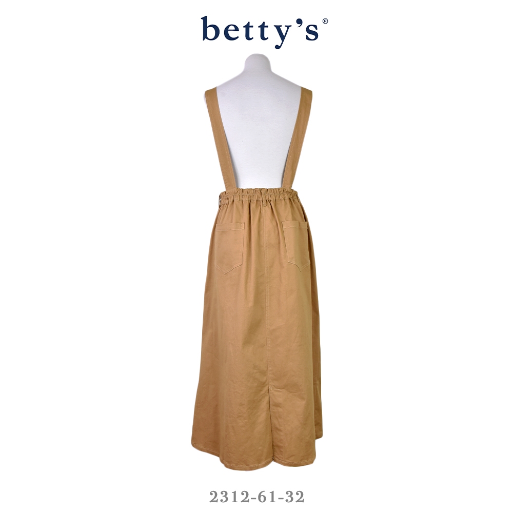 betty’s貝蒂思(31)後開衩壓線鬆緊吊帶牛仔裙(共二色)卡其,M|卡其,L|黑色,M|黑色,LOverallsbetty’s貝蒂思