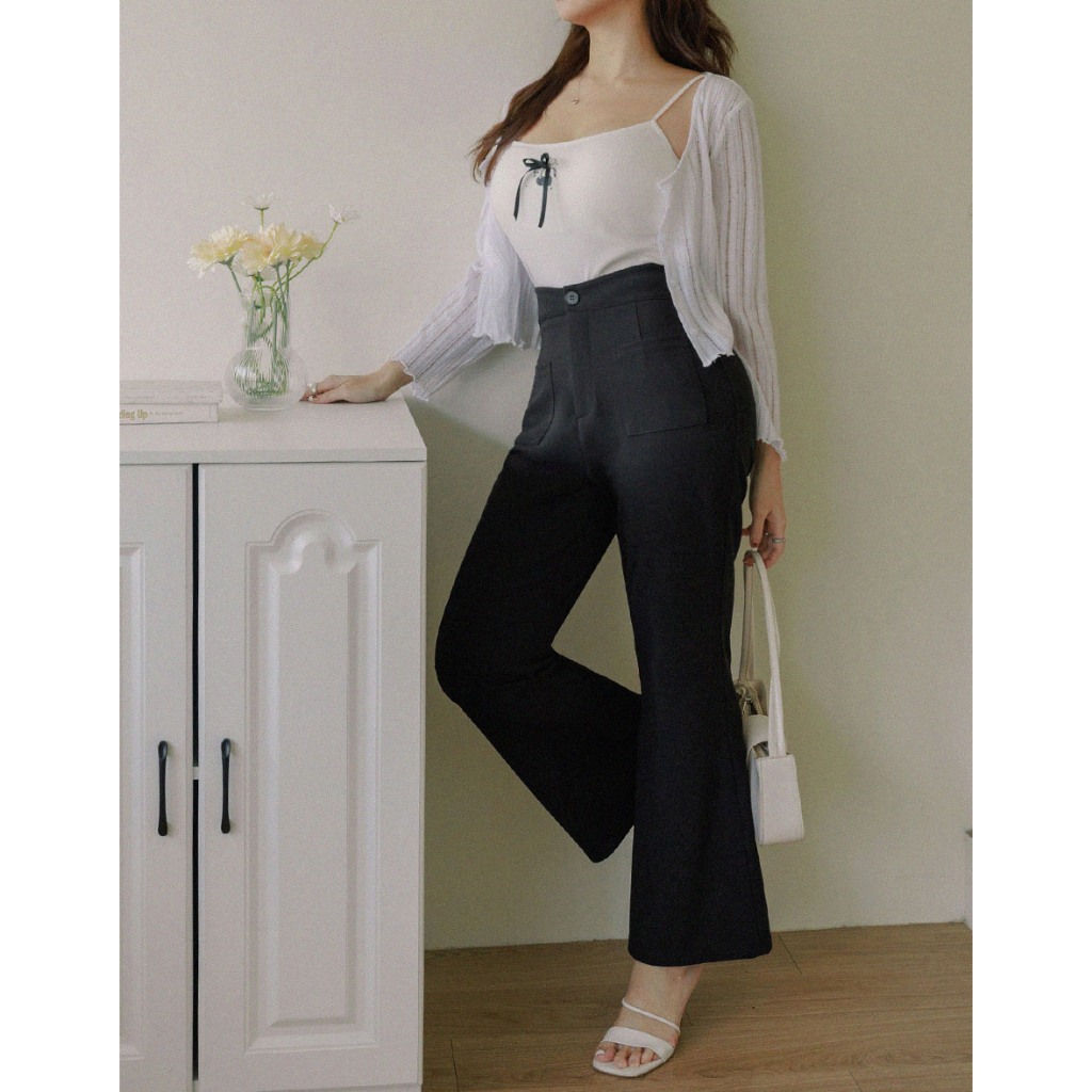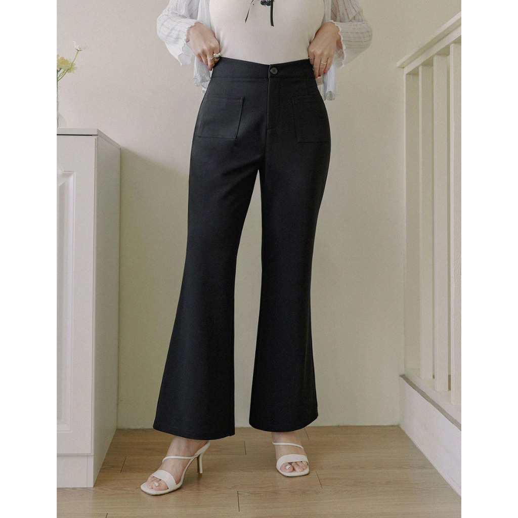 AIR SPACE PLUS 【纖女級2.0】高腰剪裁V字喇叭褲(黑) 女裝 現貨 大尺碼 中大尺碼黑,XL|黑,2XL|黑,3XLAIR SPACE
