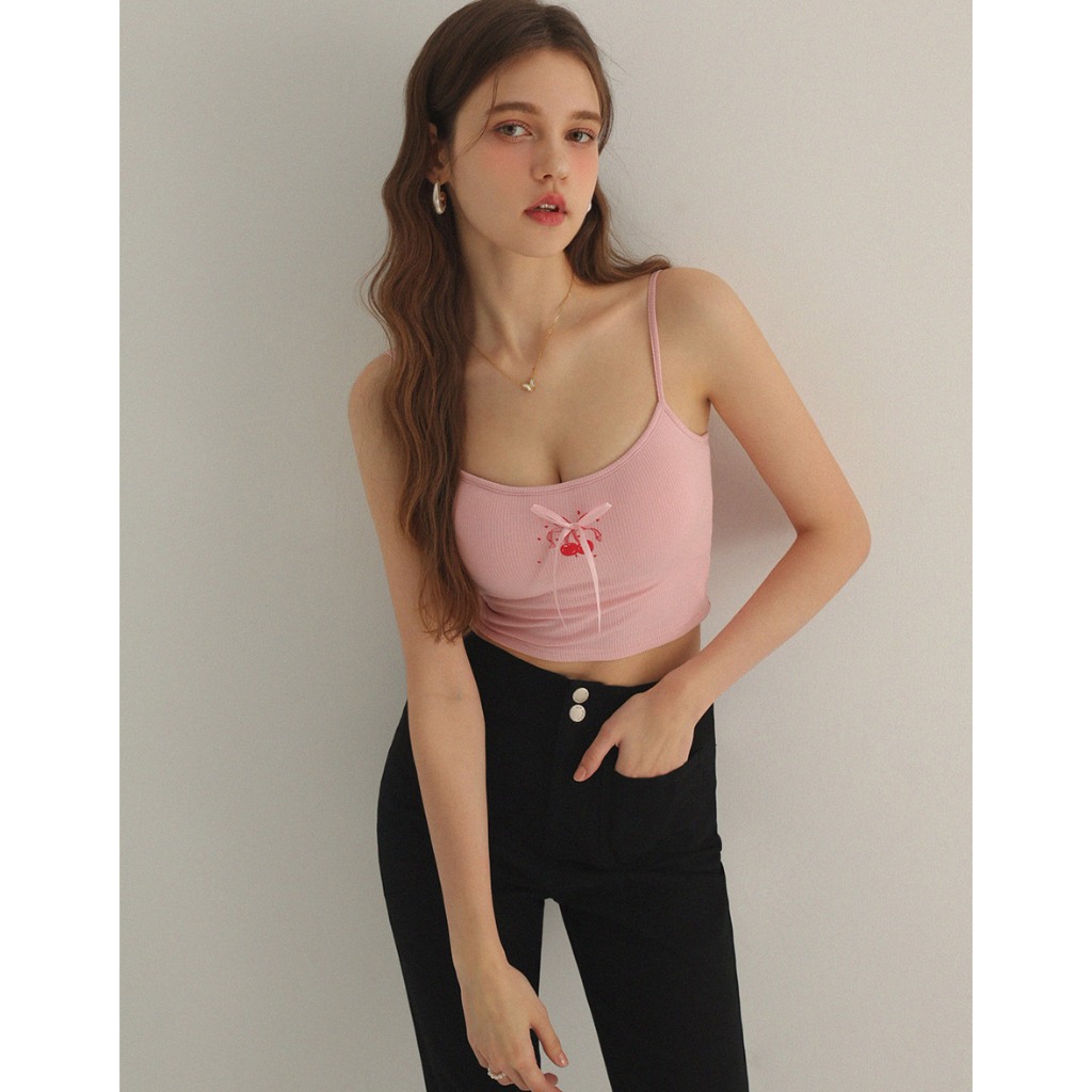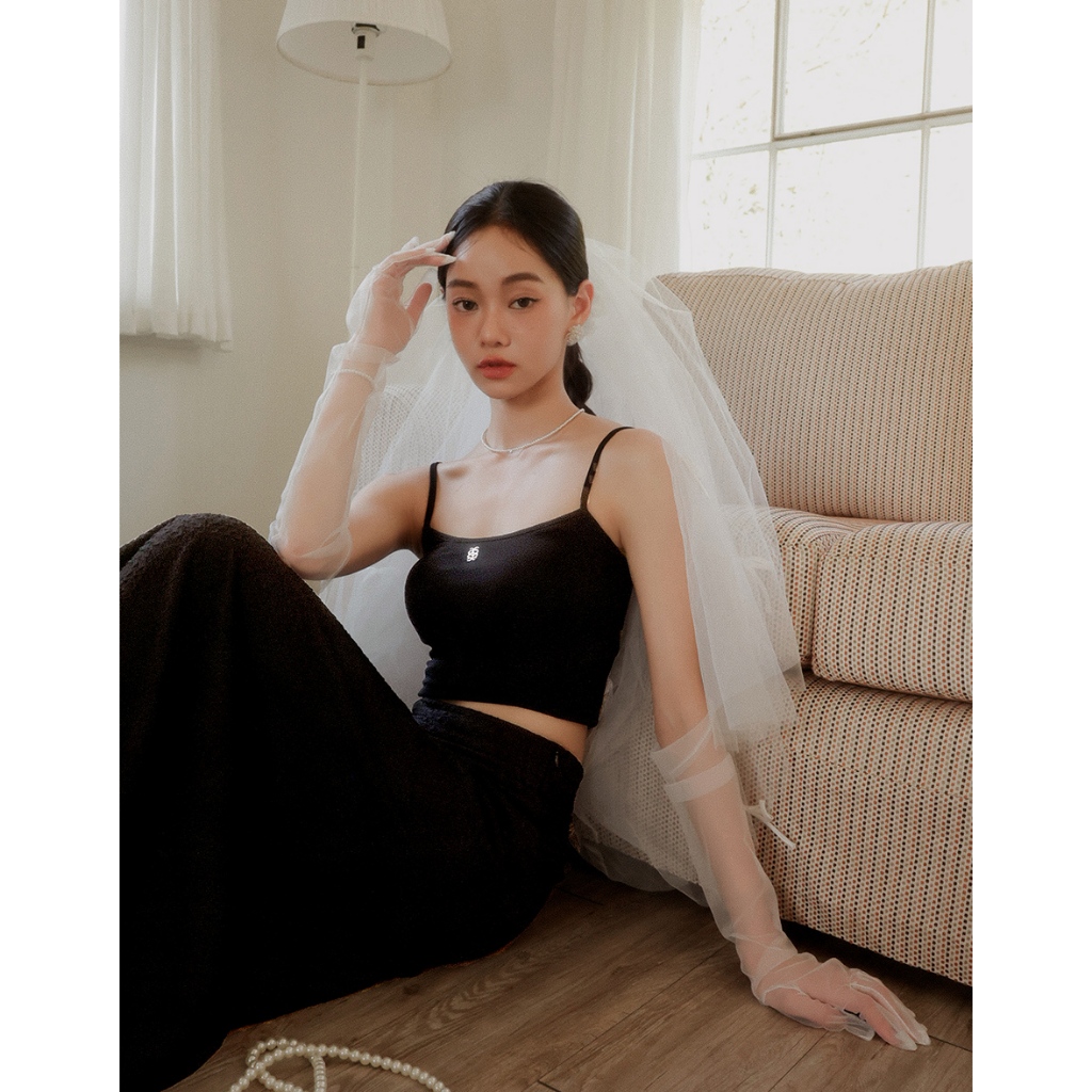 AIR SPACE LADY 品牌LOGO細肩帶短版背心(附胸墊)(黑/白/藍) 女裝 現貨