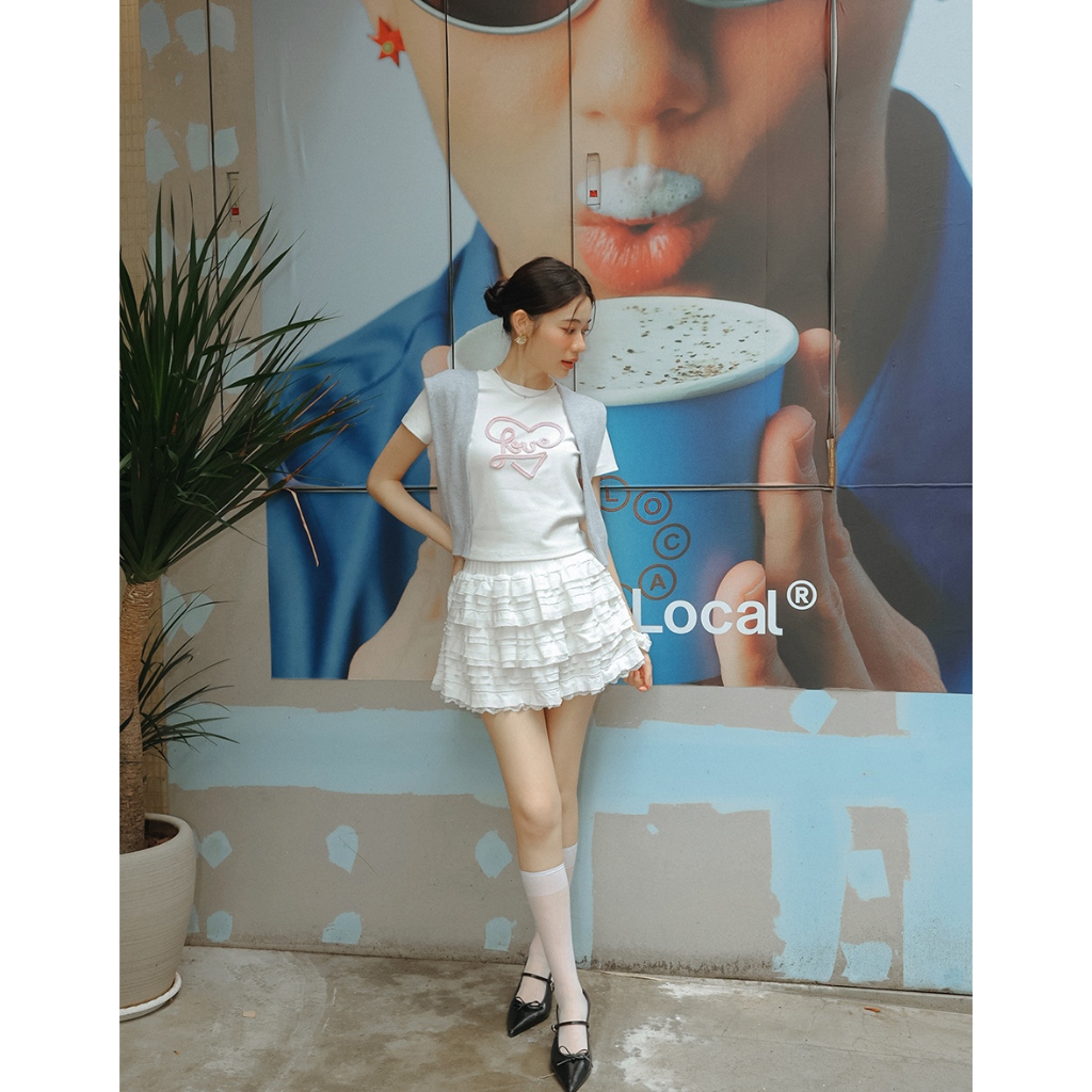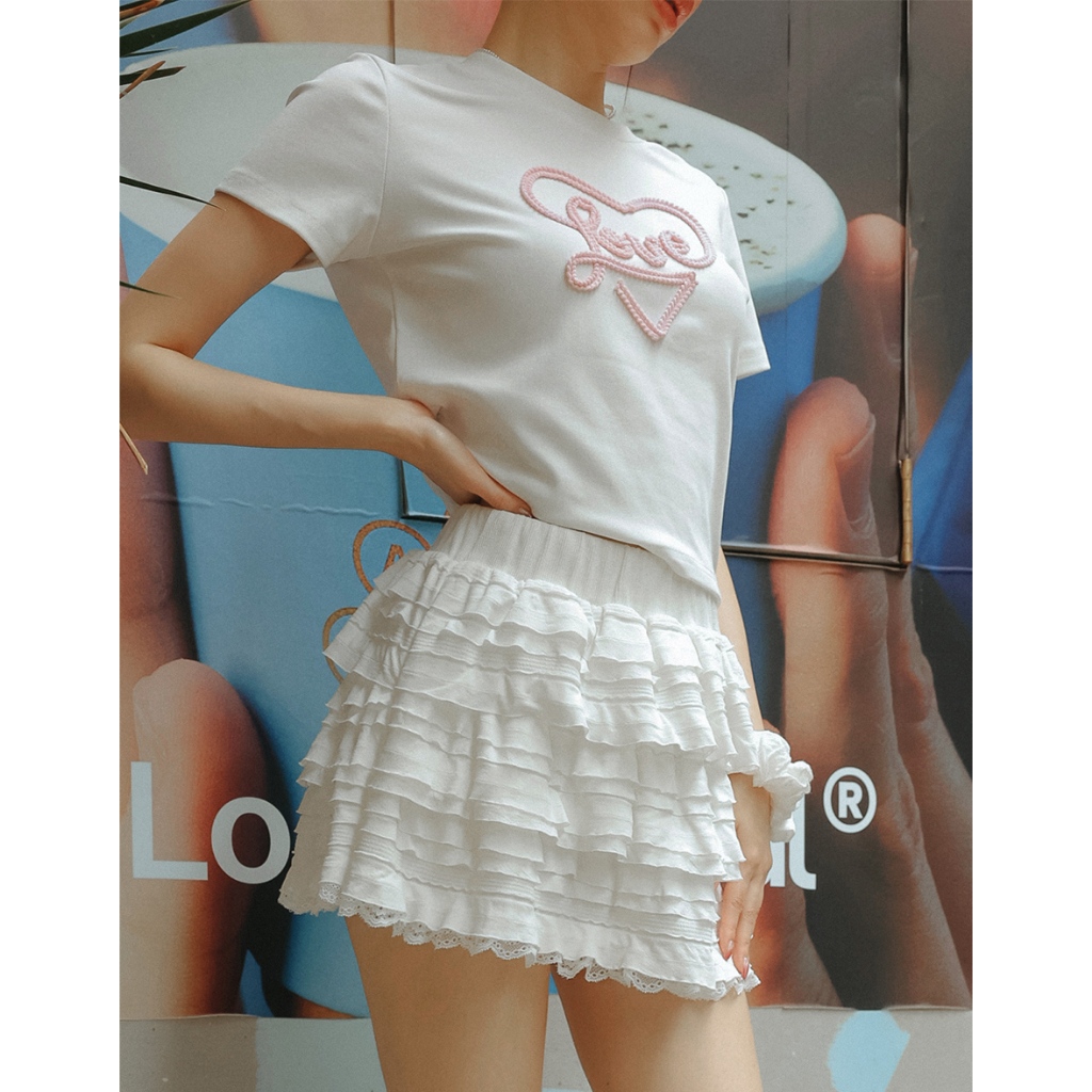 AIR SPACE LADY 多層次蕾絲花邊蛋糕短裙(黑/白) 女裝 現貨黑,S|黑,M|黑,L|白,S|白,M|白,LAIR SPACE