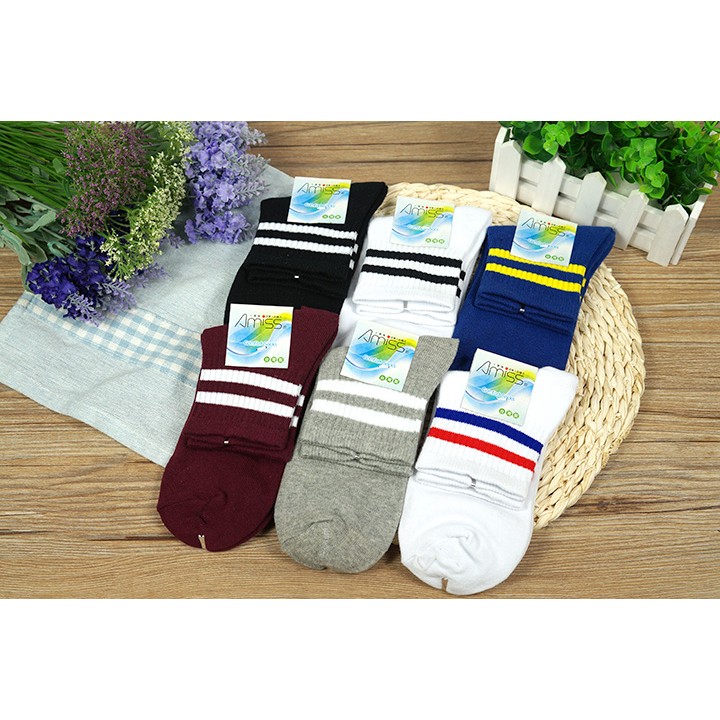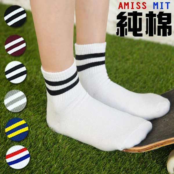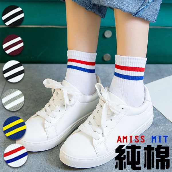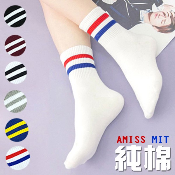 【Amiss】雙線條紋長襪 台灣製現貨 雙槓襪 雙線襪 條紋襪 純棉襪 學院風長襪 條紋中筒襪 百搭純棉襪-C912藍底(黃)-1雙|白底(紅藍)-1雙|白底(黑)-1雙|黑底(白)-1雙|棗紅(白)-1雙|灰底(白)-1雙|不挑色-1雙SocksAmiss全家人的襪子