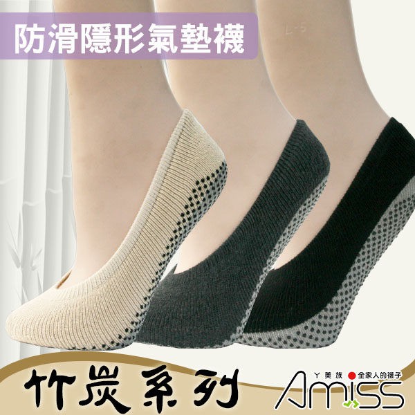 【Amiss】竹炭-防滑-氣墊毛巾底隱形襪【3雙入】(C305-2)黑灰色-3雙入|膚色-3雙入SocksAmiss全家人的襪子