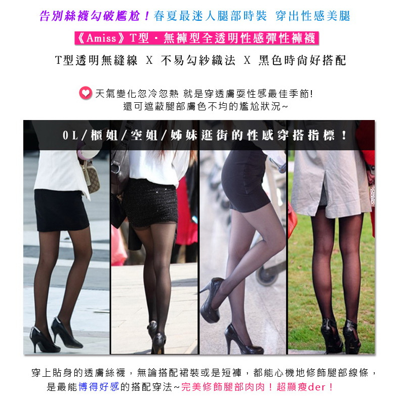 【Amiss】韓國紗x台灣製 極薄無褲型絲襪 全透明 彈性無痕褲襪 透膚絲襪 透膚絲襪 30D絲襪薄透 A101-530D韓國紗無褲型-黑色(1雙)|30D韓國紗無褲型-亮光膚(1雙)PantyhoseAmiss全家人的襪子