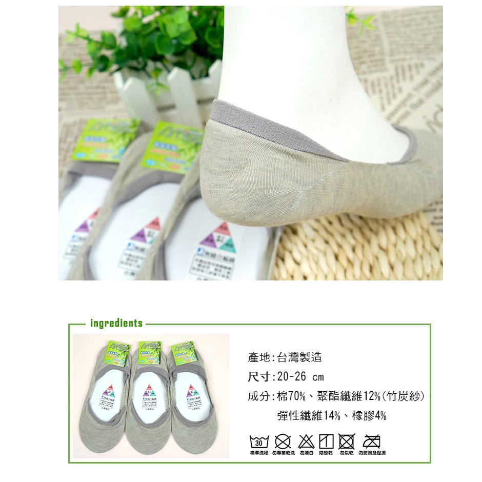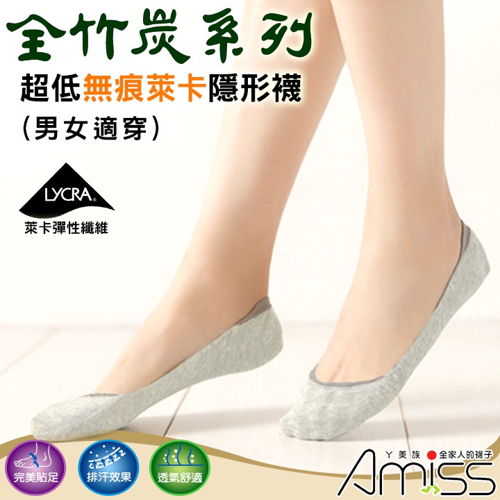 Amiss【全竹炭面紗】萊卡機能無痕隱形襪-後跟防滑(M006R)竹炭原色(灰)|黑竹炭色(黑)|黑竹炭色(黑)-加大尺寸SocksAmiss全家人的襪子