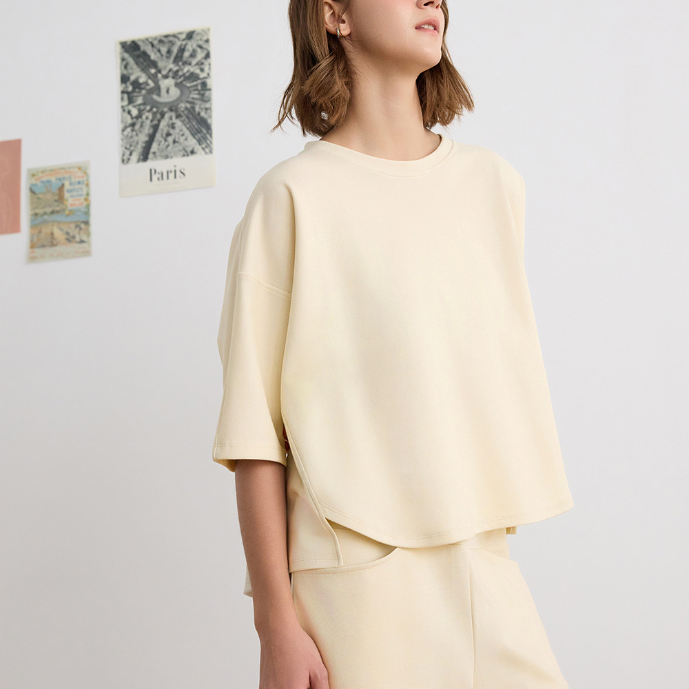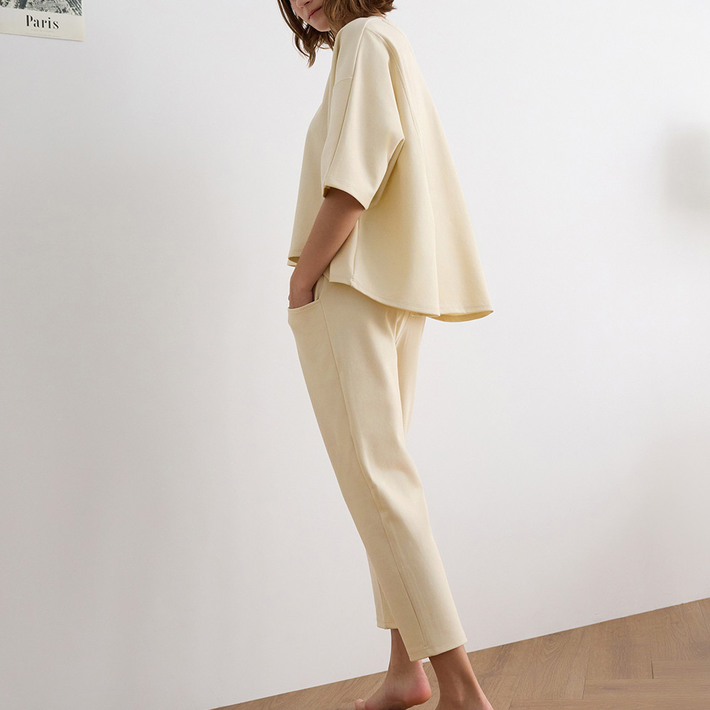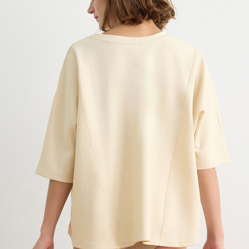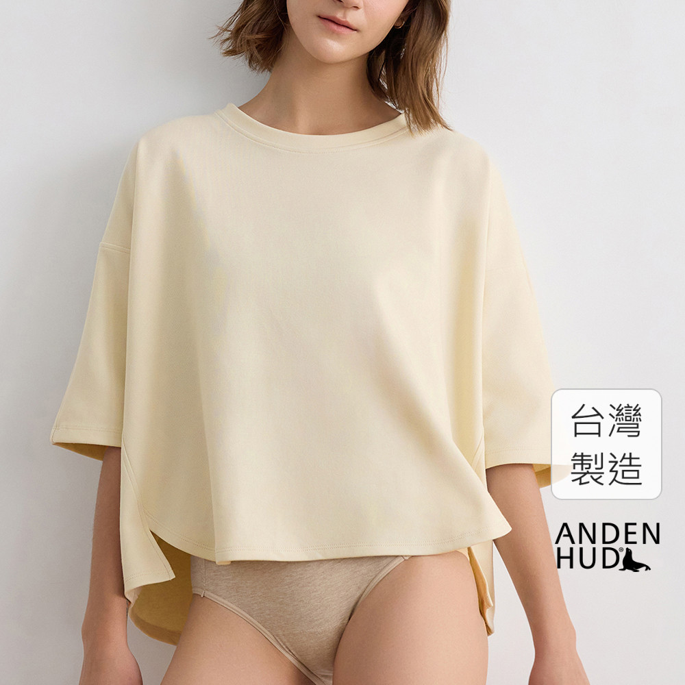 【Anden Hud】上衣_Travel memory.八分長連袖寬鬆睡衣(奶油米) 台灣製S/M|L/XLPajamasAnden Hud 台灣製內著 官方旗艦店