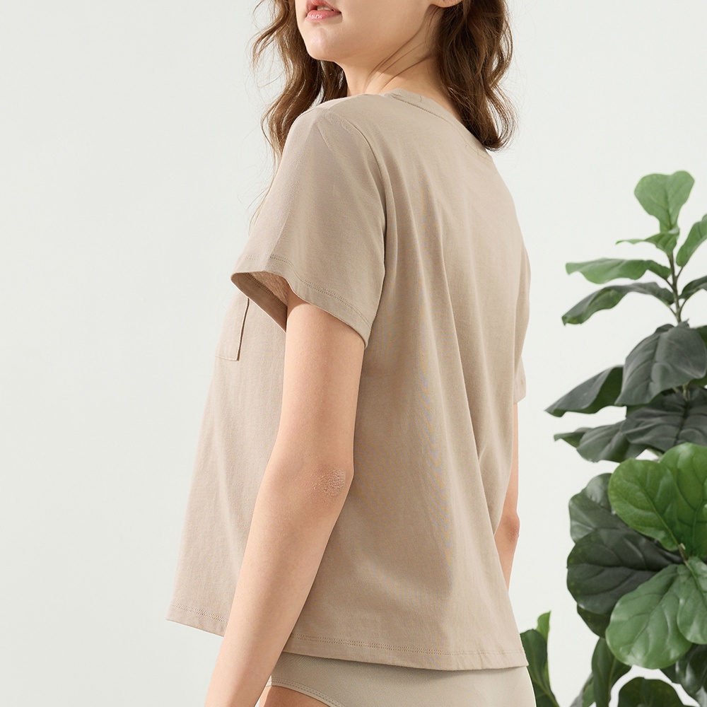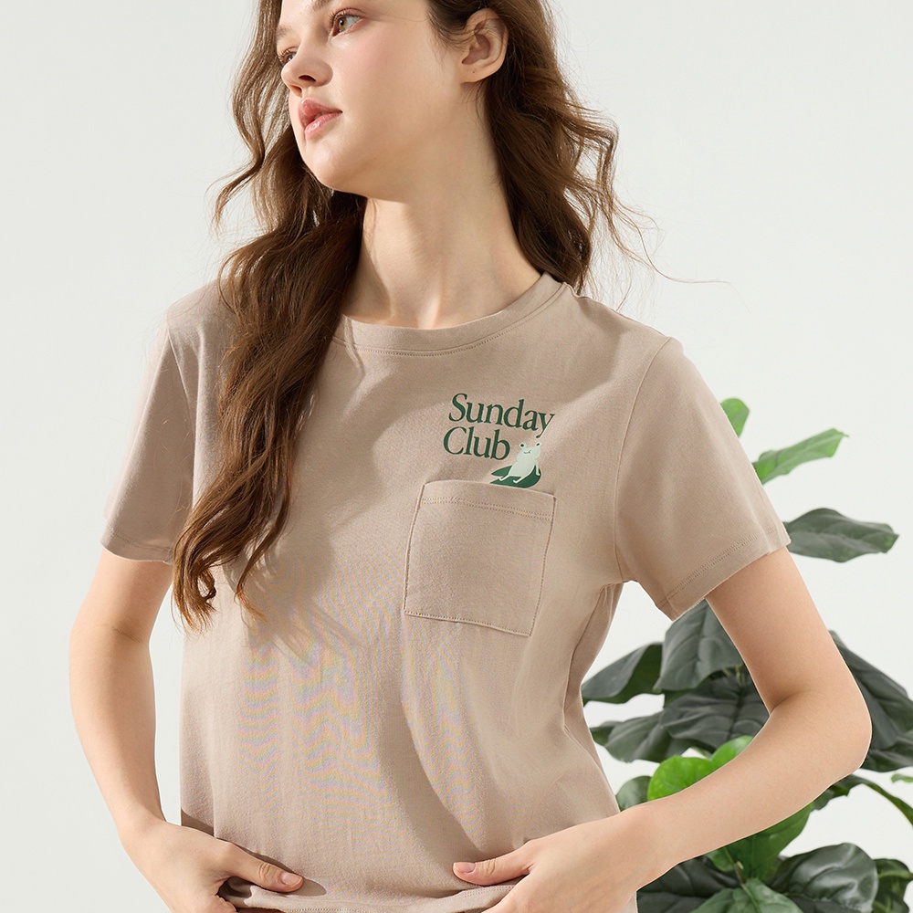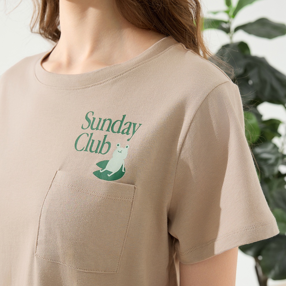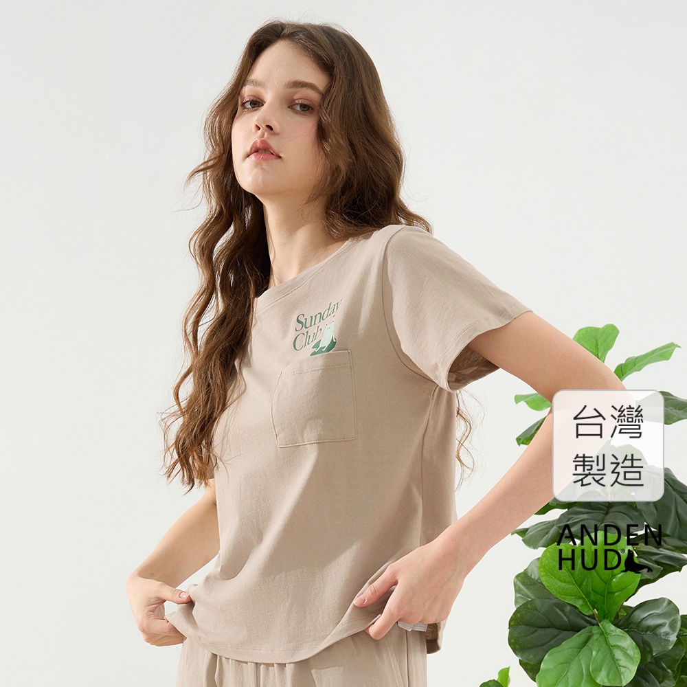 【Anden Hud】上衣_陽光微暖.純棉圓領口袋短袖居家睡衣(卡其–青蛙) 純棉台灣製S|M|L|XLPajamasAnden Hud 台灣製內著 官方旗艦店