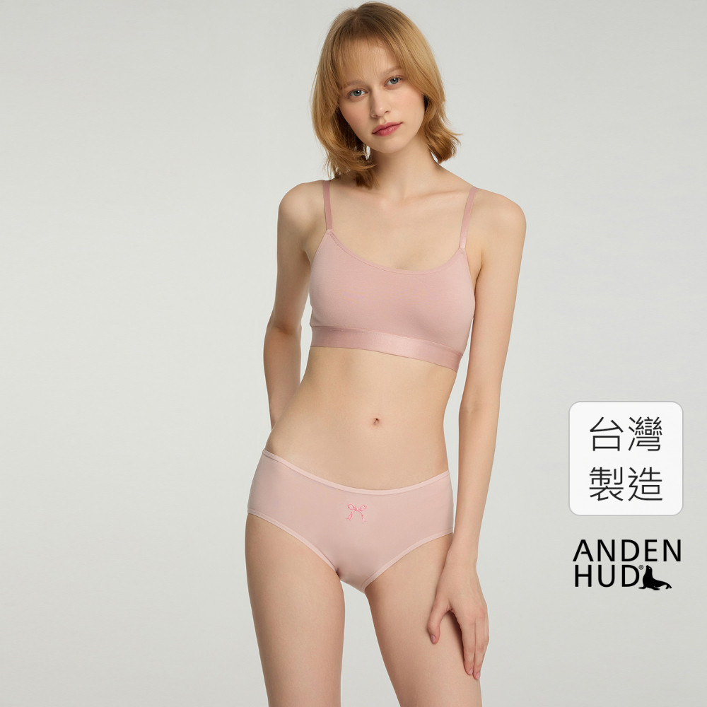 【Anden Hud】Balletcore .細邊中腰三角內褲(芭蕾粉-刺繡蝴蝶結) 純棉台灣製M|L|XLPantiesAnden Hud 台灣製內著 官方旗艦店