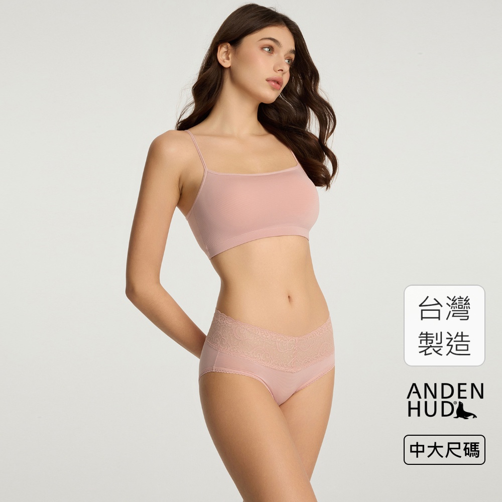 【Anden Hud】XXL 冰絲涼感抗菌.V蕾絲中腰三角內褲(寒櫻粉) 純棉台灣製XXLPantiesAnden Hud 台灣製內著 官方旗艦店