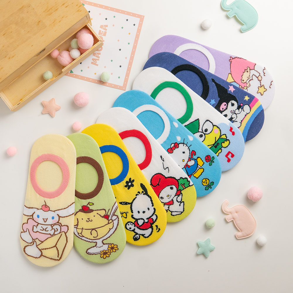 AHUA阿華有事嗎 韓國襪子 三麗鷗拼色隱形襪 K1741 正韓少女襪 韓妞必備長襪 百搭純棉襪 卡通襪大耳狗蘋果|布丁狗杯子|帕恰狗蝴蝶|美樂蒂郊遊|KiKi&LaLa|酷洛米彩虹|KITTY下雨|大眼蛙荷葉SocksAHUA 韓國襪子品牌旗艦店