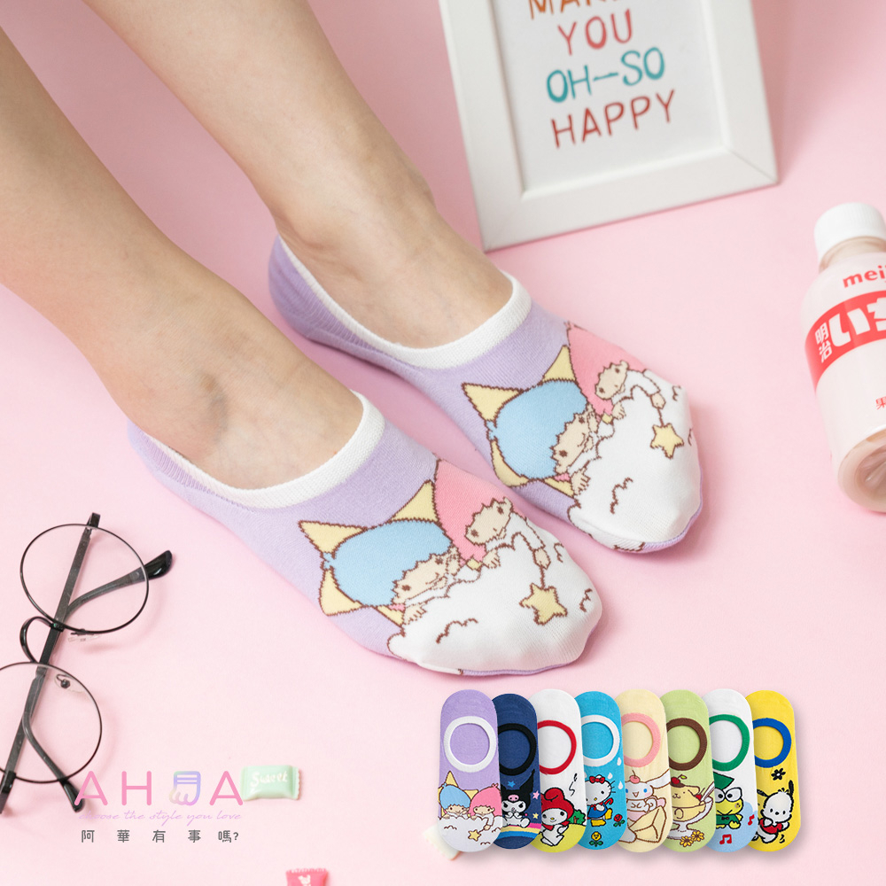 AHUA阿華有事嗎 韓國襪子 三麗鷗拼色隱形襪 K1741 正韓少女襪 韓妞必備長襪 百搭純棉襪 卡通襪