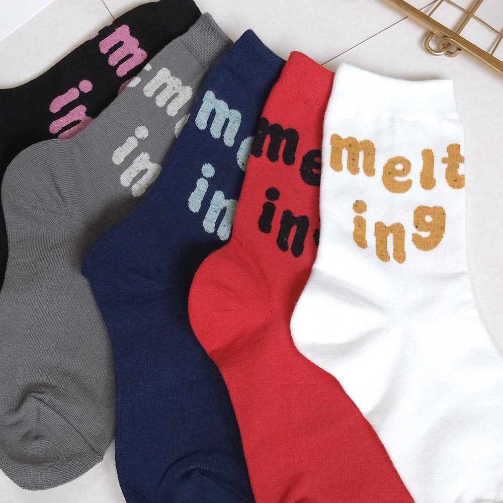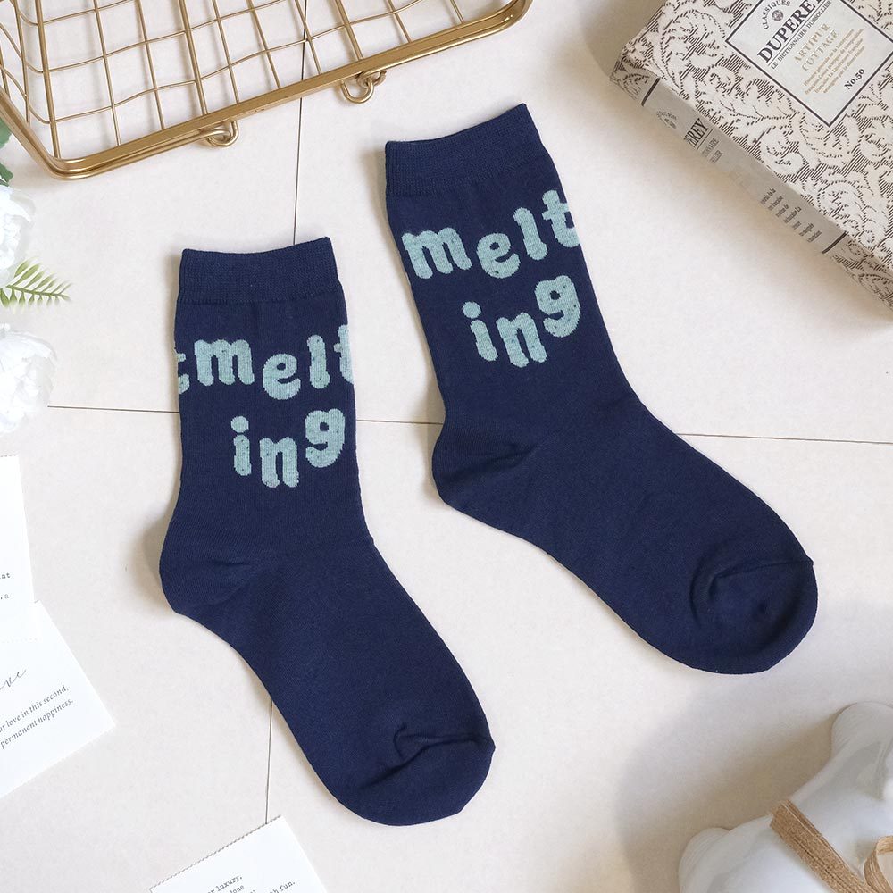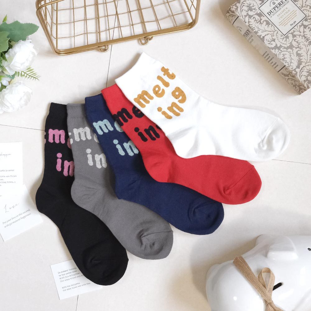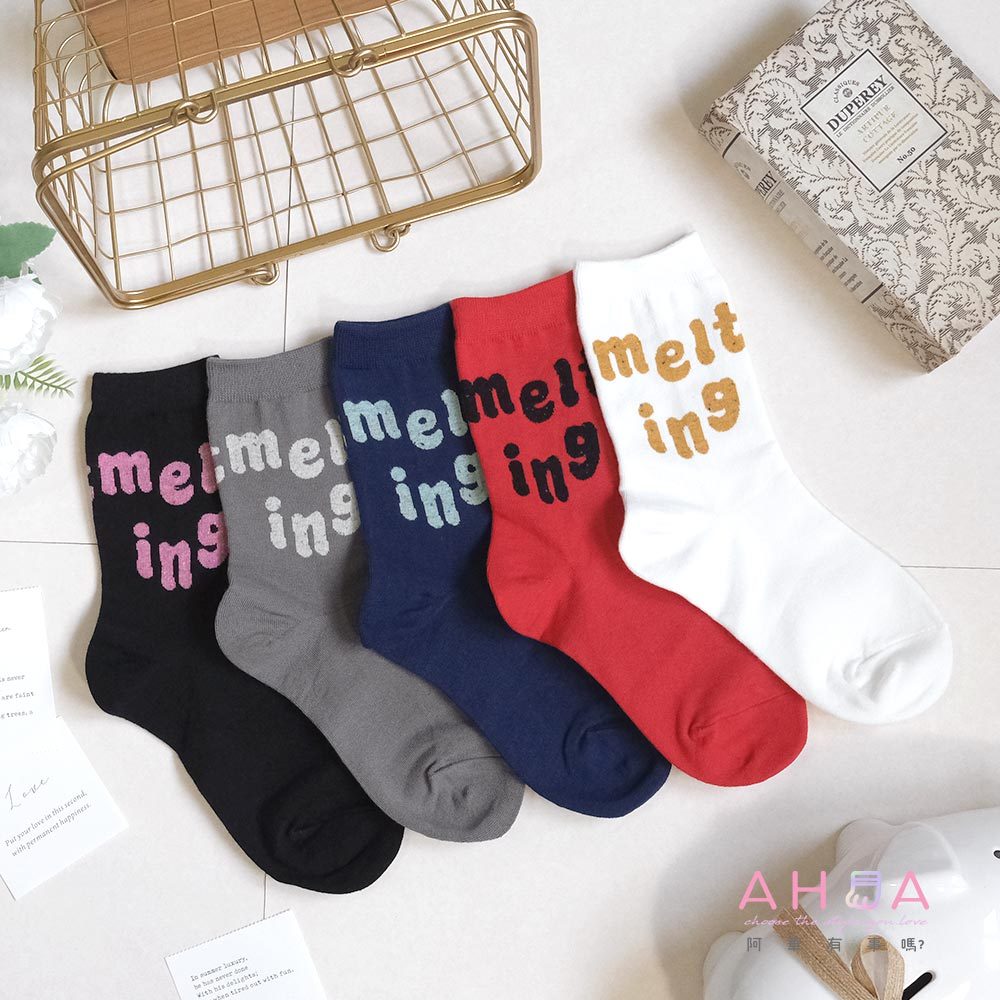 AHUA阿華有事嗎 Melting英文中筒襪 K2152 正韓襪子 百搭純棉襪 韓妞必備 少女襪白底|深藍底|紅底|灰底|黑底SocksAHUA 韓國襪子品牌旗艦店