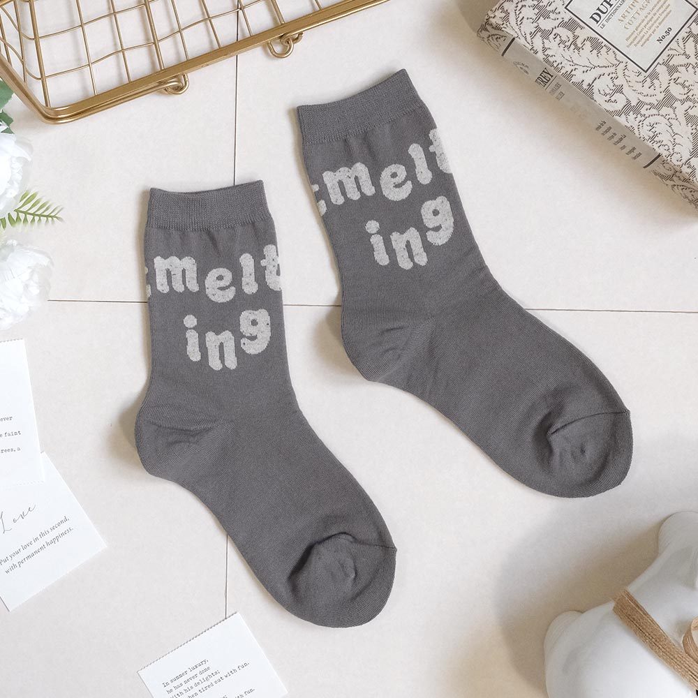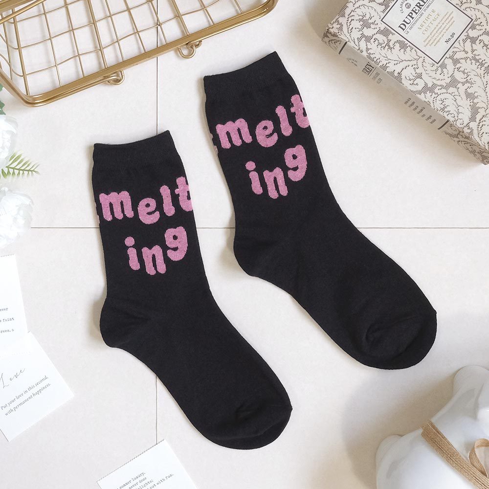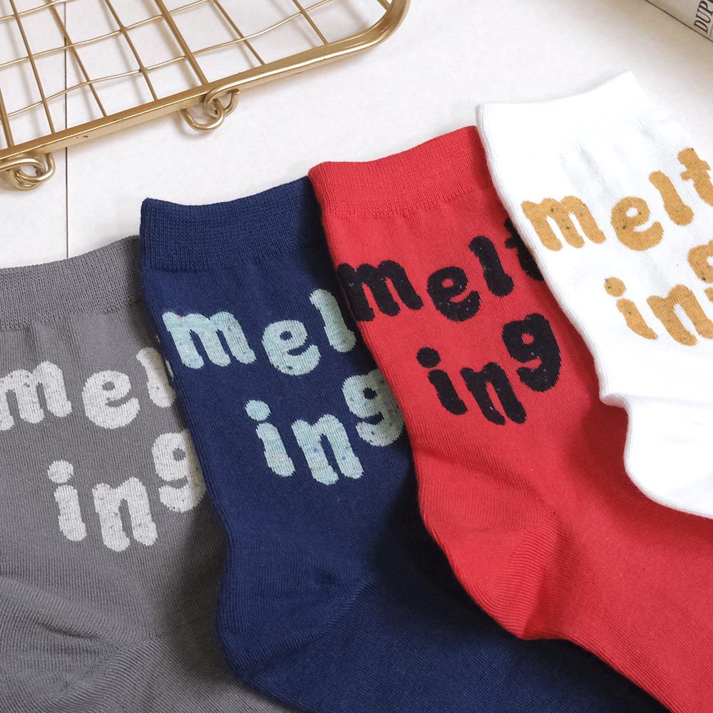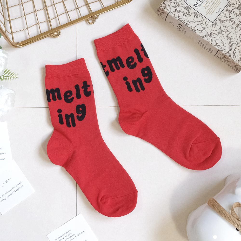 AHUA阿華有事嗎 Melting英文中筒襪 K2152 正韓襪子 百搭純棉襪 韓妞必備 少女襪白底|深藍底|紅底|灰底|黑底SocksAHUA 韓國襪子品牌旗艦店