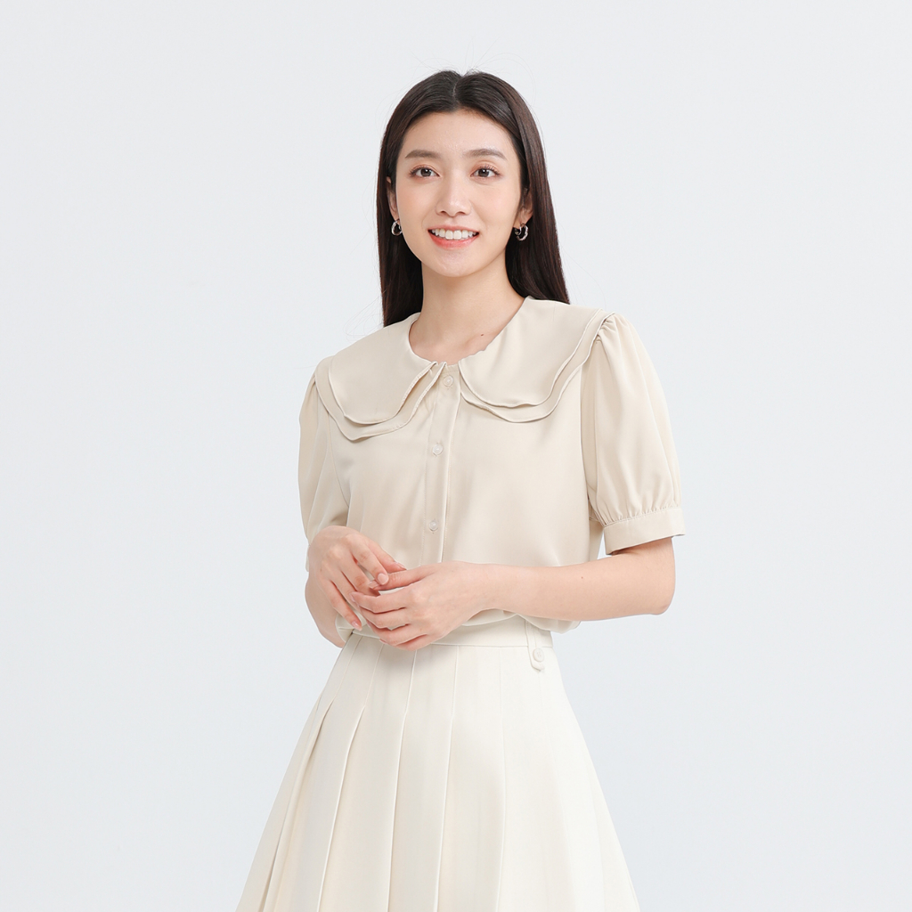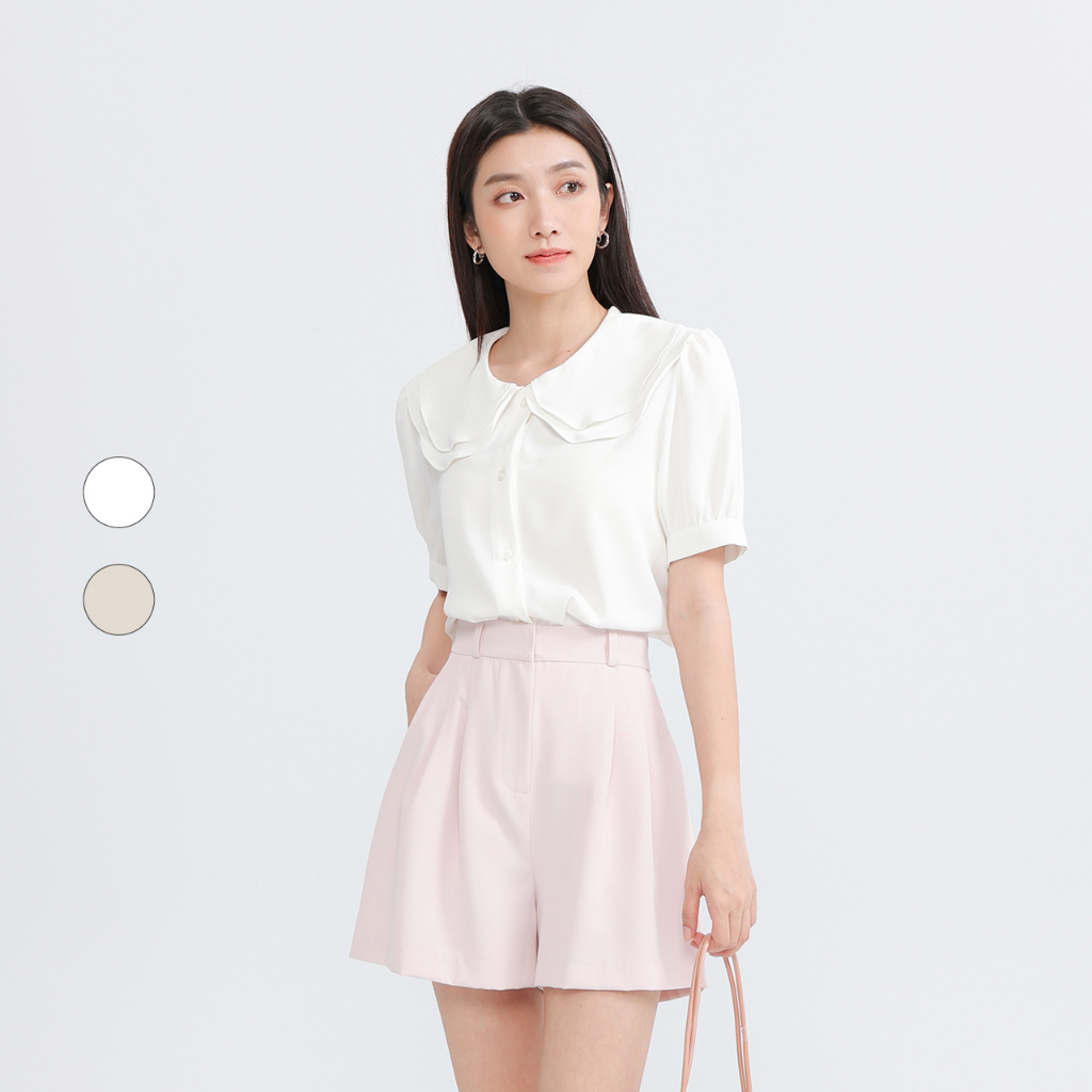 50% Fifty Percent|雙層翻領短袖襯衫|02383130009米白,L|卡其,S|卡其,M|卡其,L|米白,S|米白,MShirts & Blouses50 PERCENT 官方旗艦店