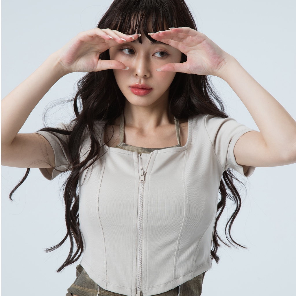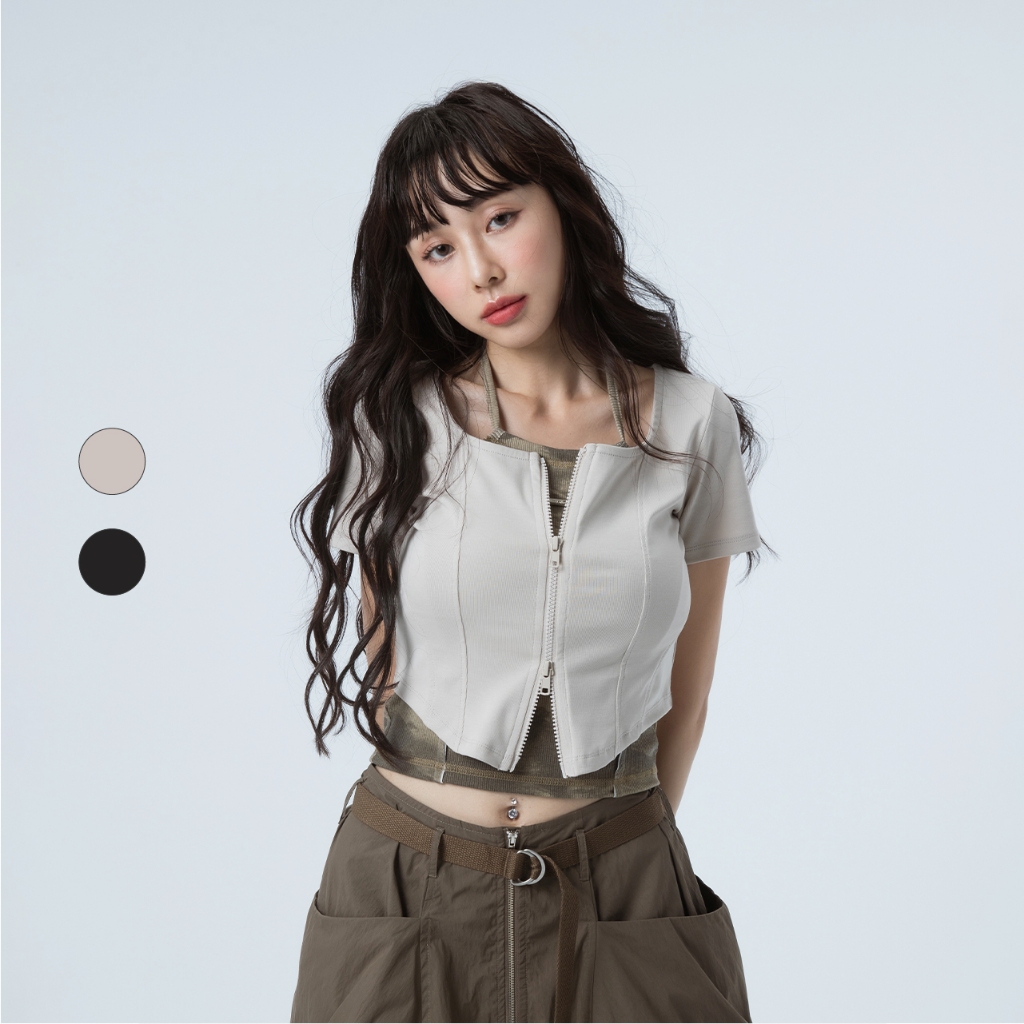 50% Fifty Percent|方領魚骨前開短袖上衣|02572710002黑色,S|黑色,M|黑色,L|淺卡,S|淺卡,M|淺卡,LT-shirts50 PERCENT 官方旗艦店