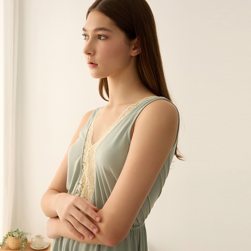 【Anden Hud】連身_夏日暖陽.蕾絲拼接無袖睡衣(清水綠) 台灣製S|M|L|XLPajamasAnden Hud 台灣製內著 官方旗艦店