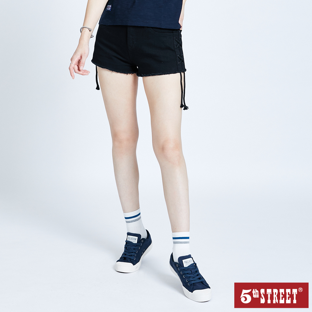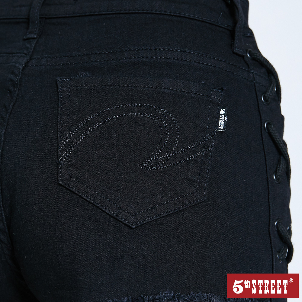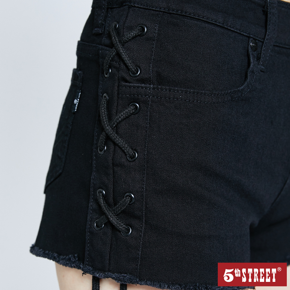 【5th STREET】 女網狀抽繩刷破牛仔短褲-黑色 (927002)M|L|XLShorts5thStreet 官方旗艦店