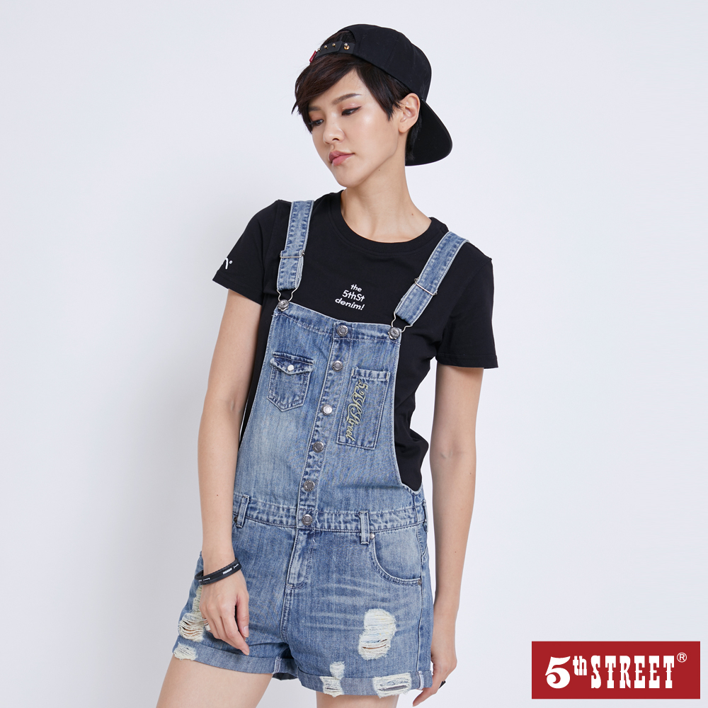 【5th STREET】 女裝 短褲 連身短褲 牛仔短褲 牛仔 淺藍 (990032)M|L|XLOveralls5thStreet 官方旗艦店