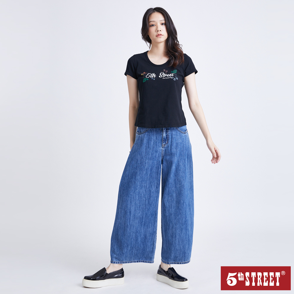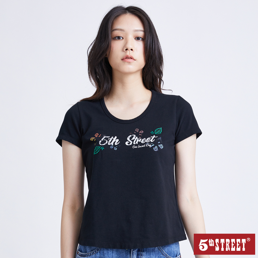 【5th STREET】 女裝 夏日蝴蝶翩翩短袖T恤-黑色 (570796)S|MT-shirts5thStreet 官方旗艦店