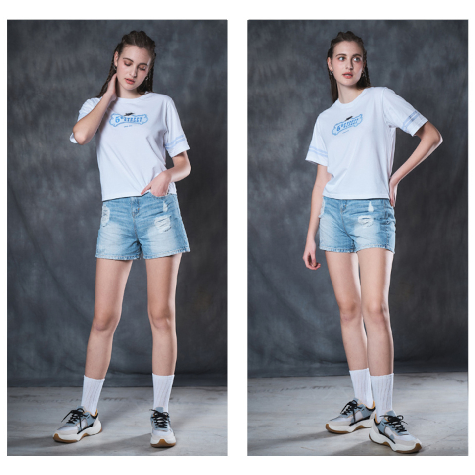 【5th STREET】 女裝 高腰A字牛仔短褲-拔淺藍 (927009)S|M|L|XL|3LShorts5thStreet 官方旗艦店