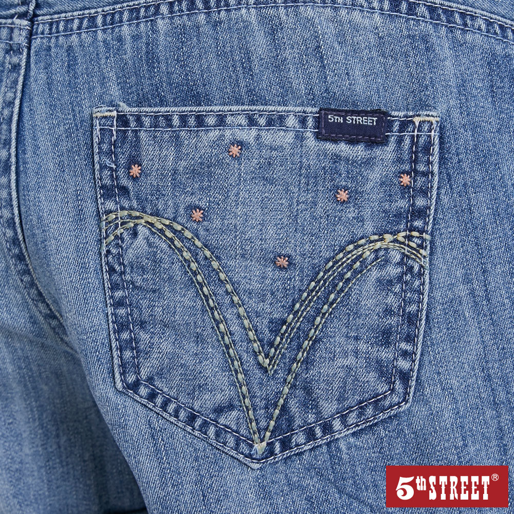 【5th STREET】 女裝 高腰A字牛仔短褲-拔淺藍 (927009)