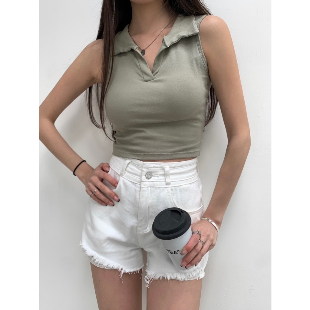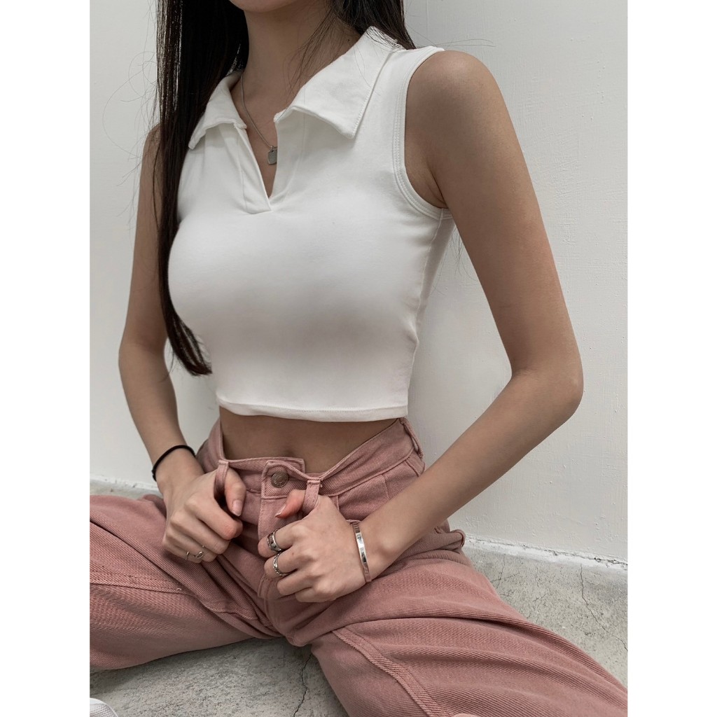 【Aa.chic熱賣商品】美式復古翻領短版罩杯上衣(五色).女裝/美式/復古/翻領/短版/罩杯/百搭【C041565】綠(現貨)|粉(現貨)|黑(現貨)|白(現貨)|深灰(預購)OthersAa Chic