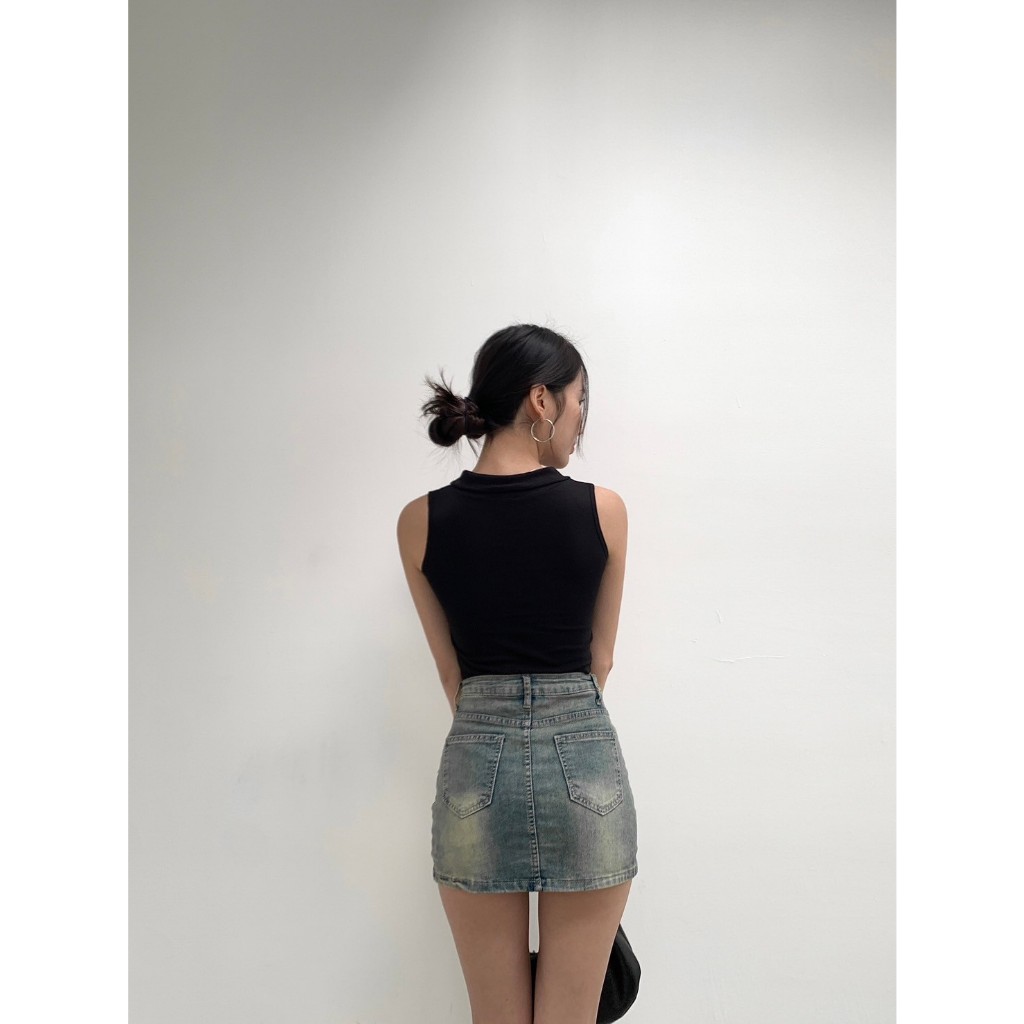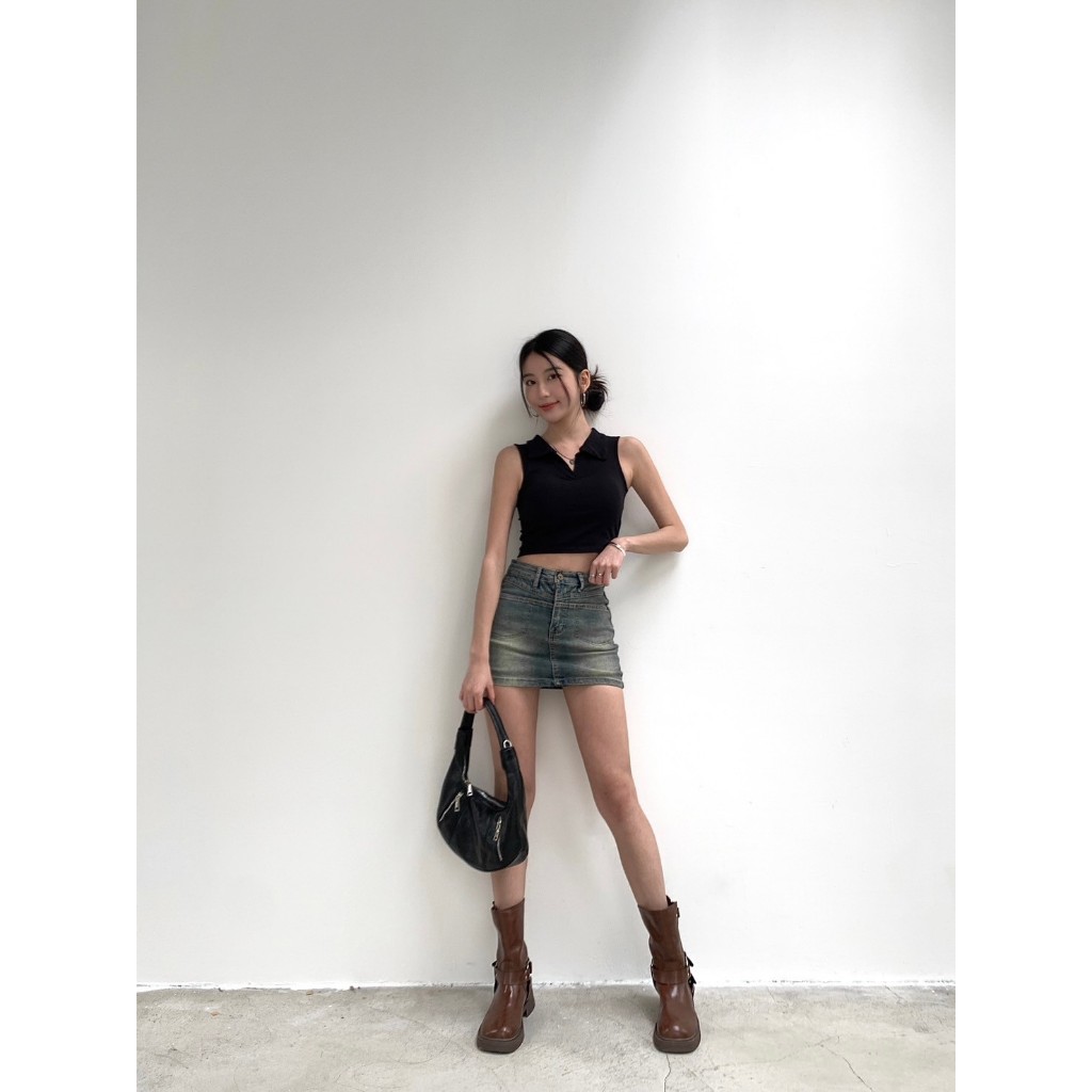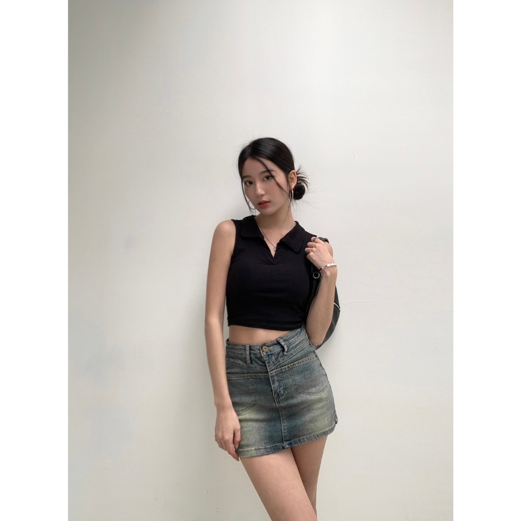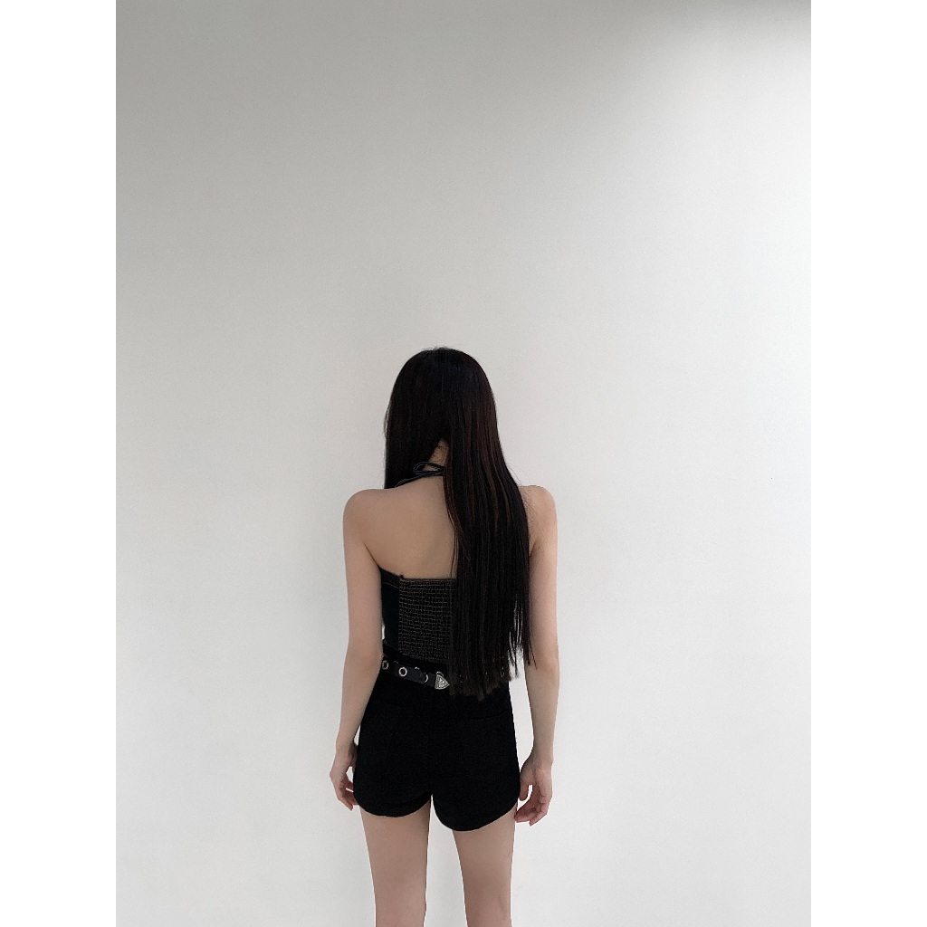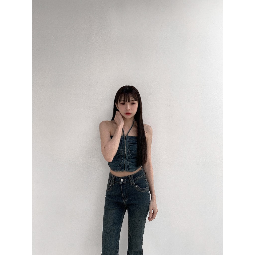 【Aa.chic熱賣商品】酷辣抓皺牛仔掛脖背心(兩色).女裝/牛仔/背心/掛脖/酷辣/夏日/穿搭【C220061】黑(現貨)|藍(預購)Tanks & CamisolesAa Chic