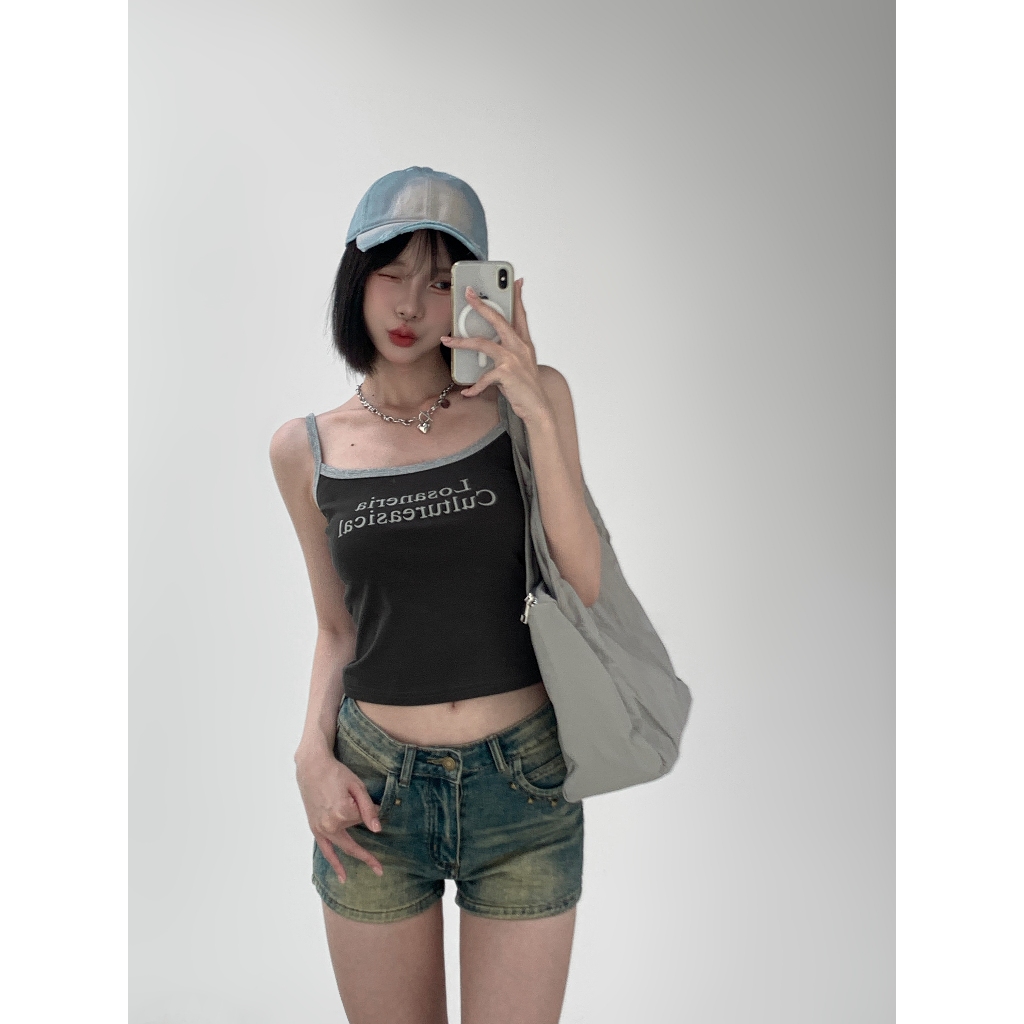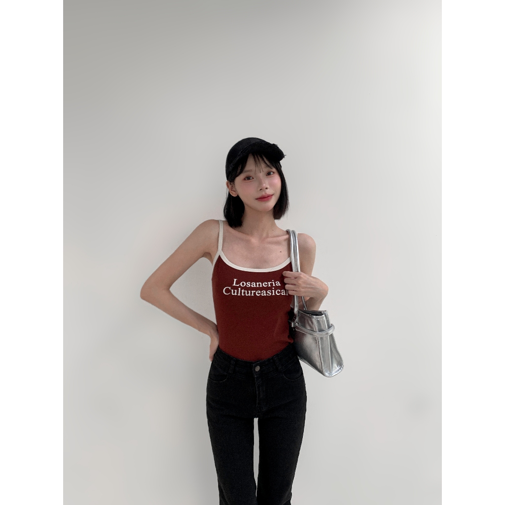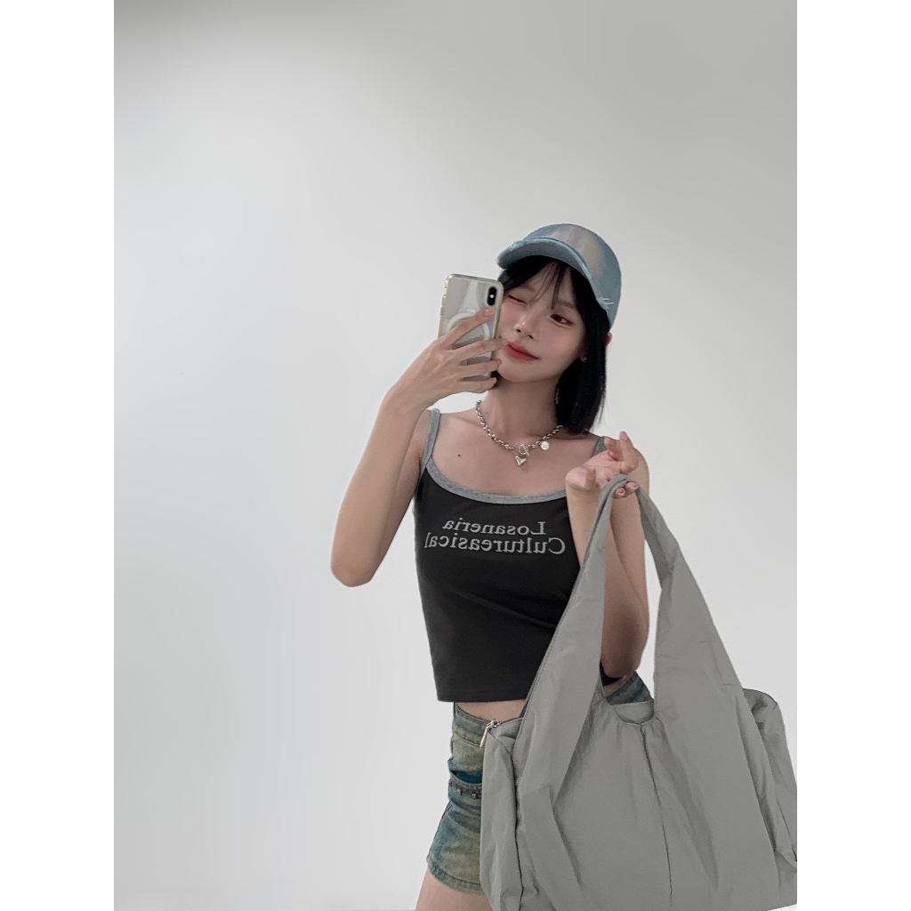 【Aa.chic熱賣商品】夏日細肩滾邊字母背心(四色).女裝/細肩/背心/字母/夏日/滾邊/百搭/實拍【C804077】深灰(現貨)|藏藍(現貨)|米白(現貨)|酒紅(現貨)Tanks & CamisolesAa Chic