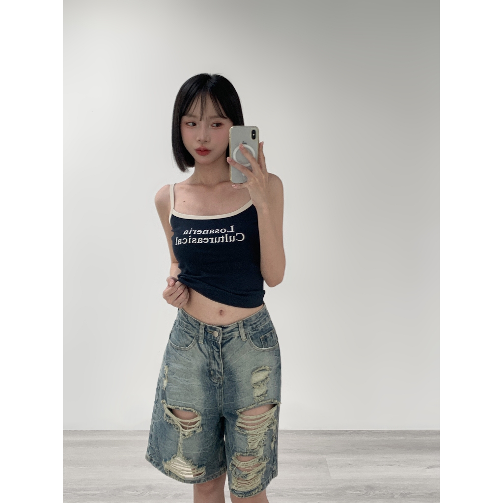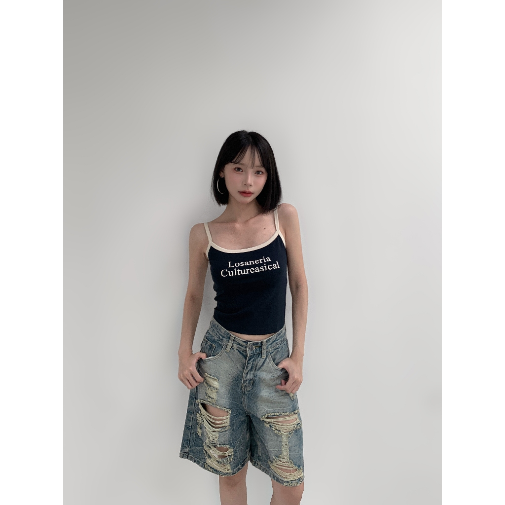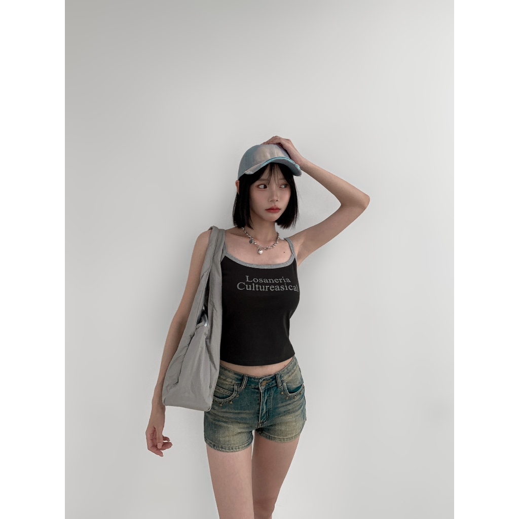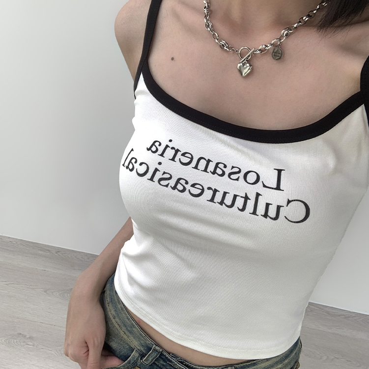 【Aa.chic熱賣商品】夏日細肩滾邊字母背心(四色).女裝/細肩/背心/字母/夏日/滾邊/百搭/實拍【C804077】深灰(現貨)|藏藍(現貨)|米白(現貨)|酒紅(現貨)Tanks & CamisolesAa Chic