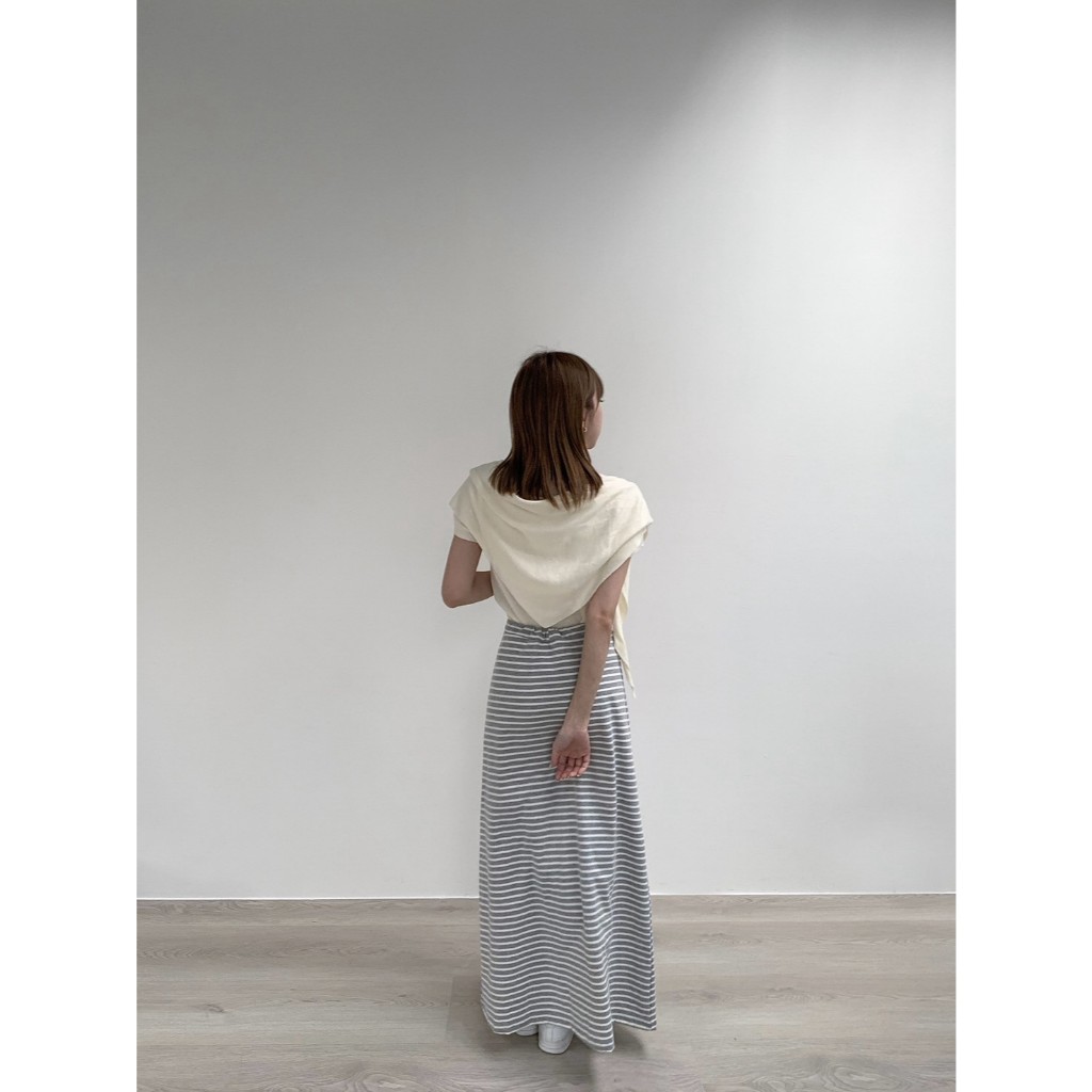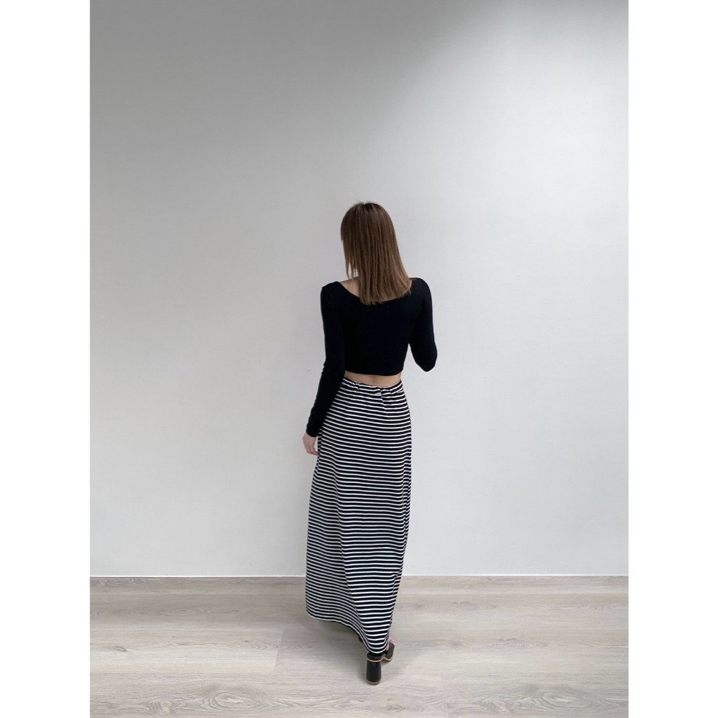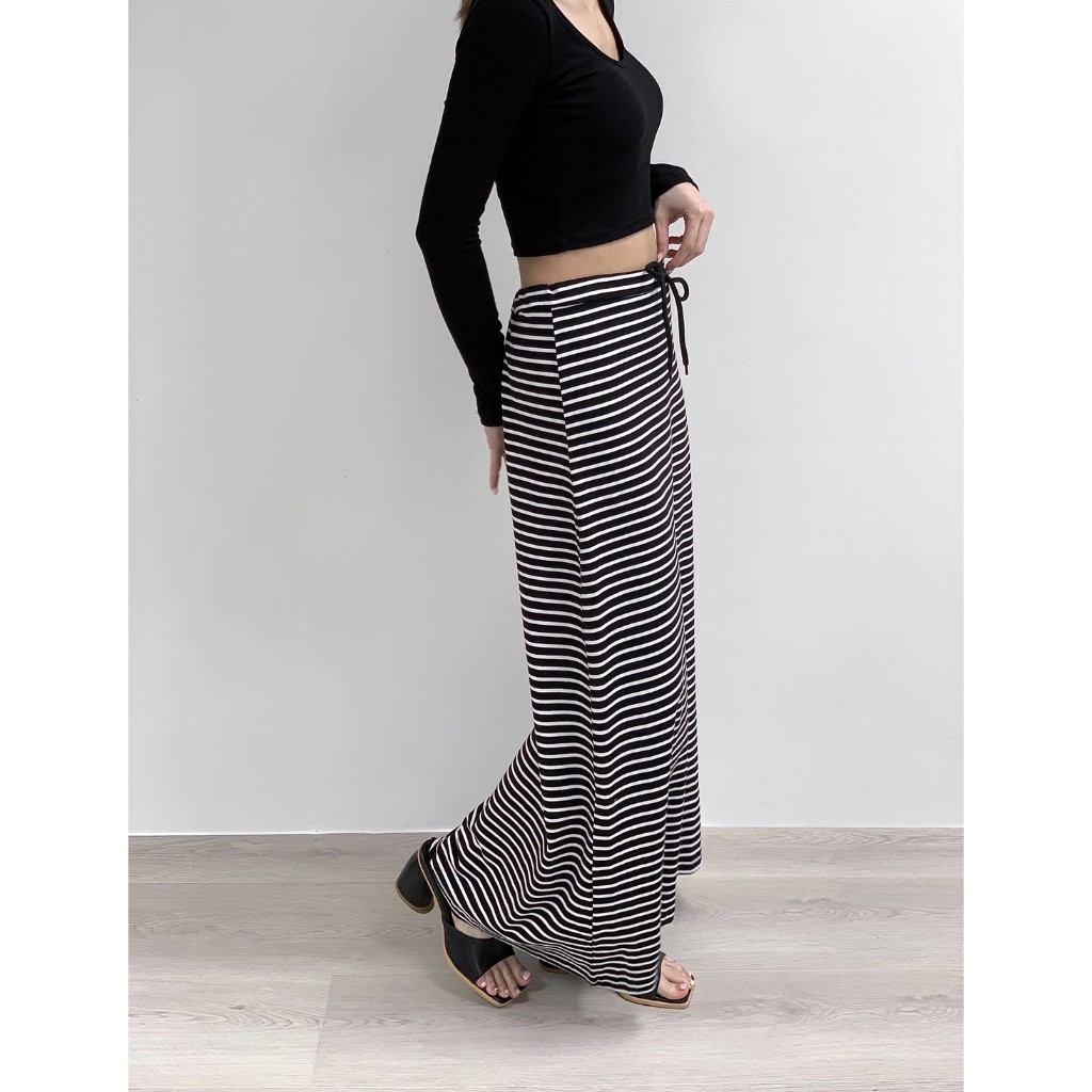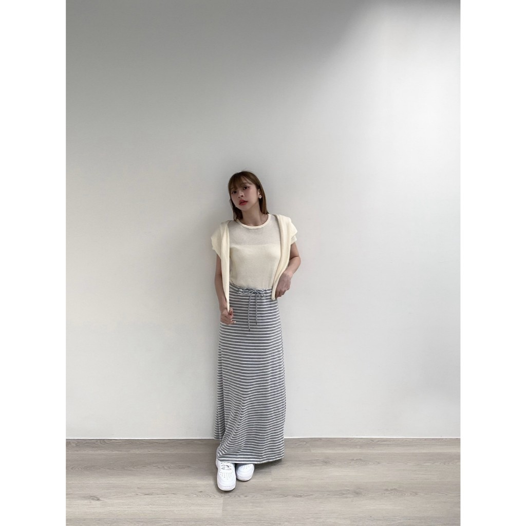 【Aa.chic】日常慵懶抽繩條紋長裙(兩色).女裝/下身/條紋/抽繩/慵懶/長裙/顯瘦/日常【C182331】黑(現貨)|淺灰(現貨)Aa Chic