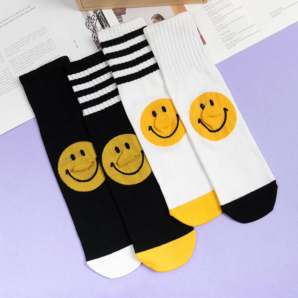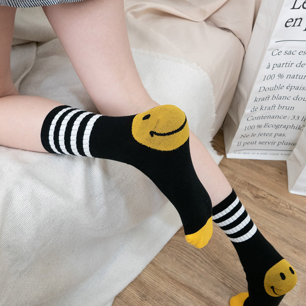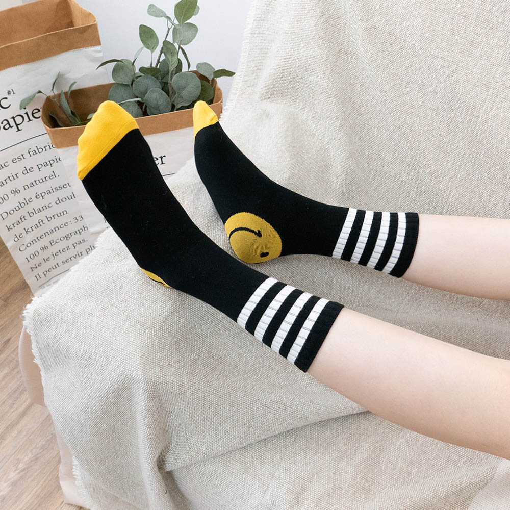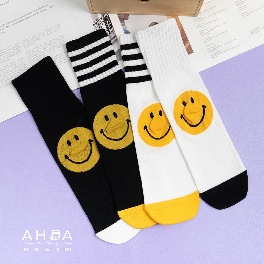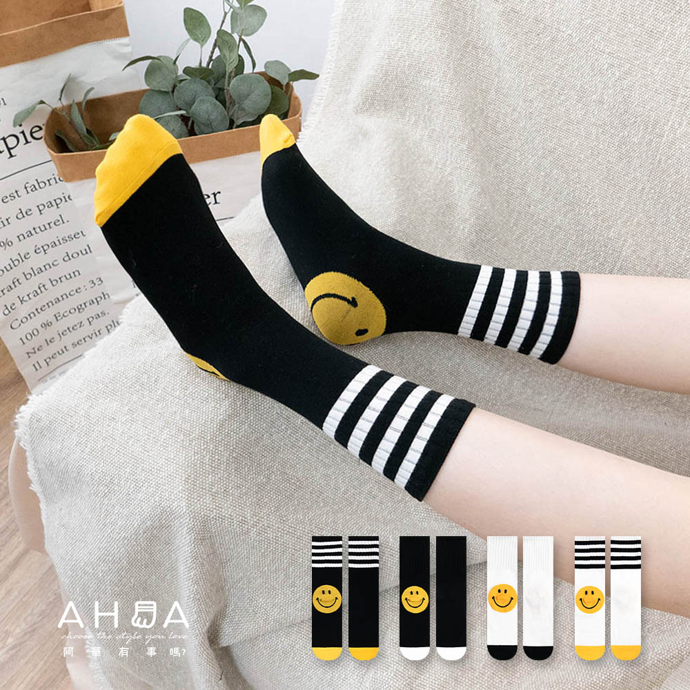 AHUA阿華有事嗎 韓國襪子 腳後跟大笑臉中筒襪 K1674 襪子推薦 流行襪首選 長襪 日系襪子 短襪白底黑前跟|白底黃前跟|黑底白前跟|黑底黃前跟SocksAHUA 韓國襪子品牌旗艦店
