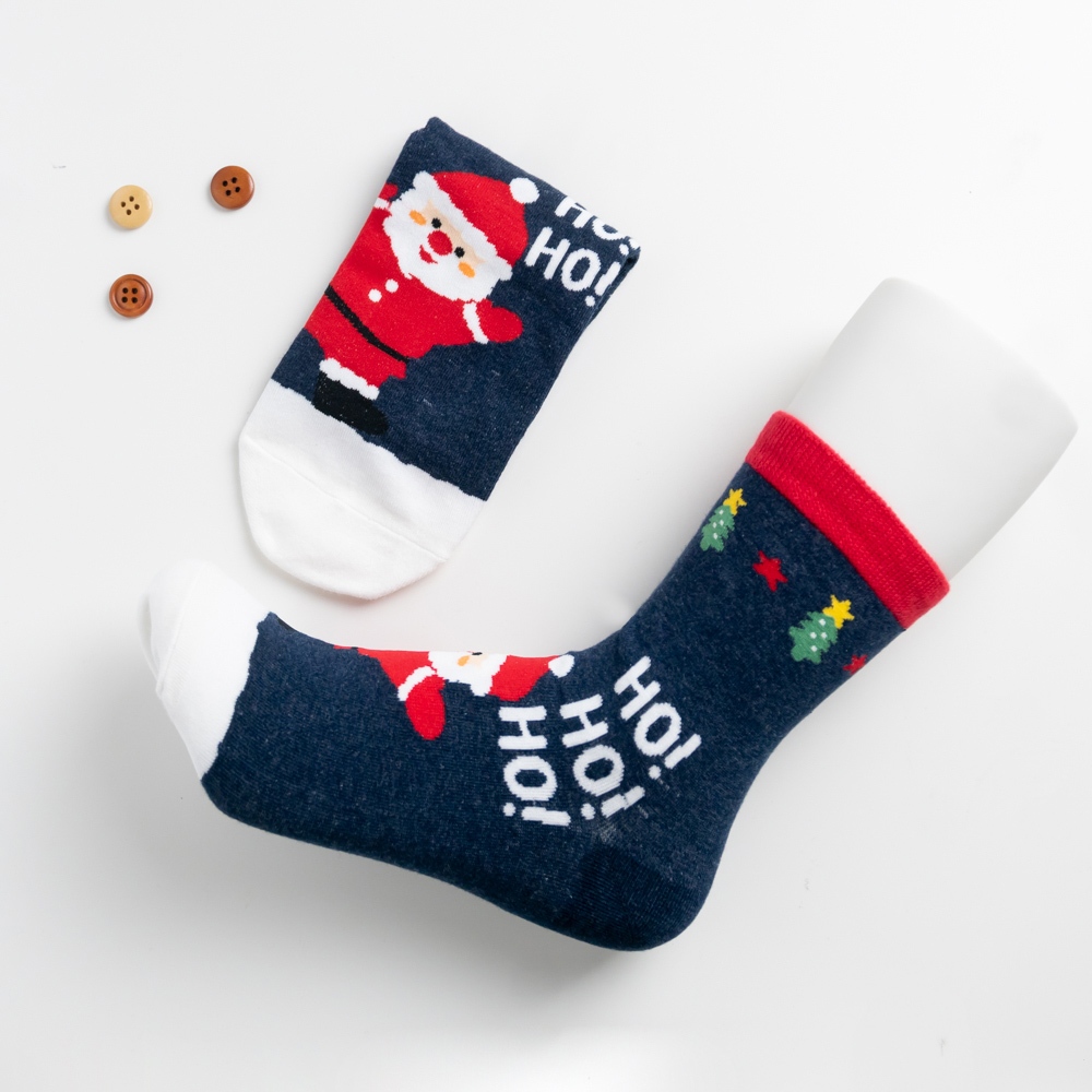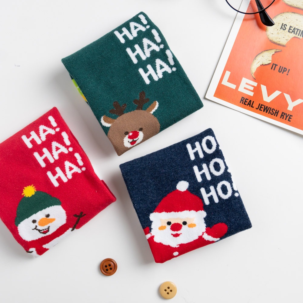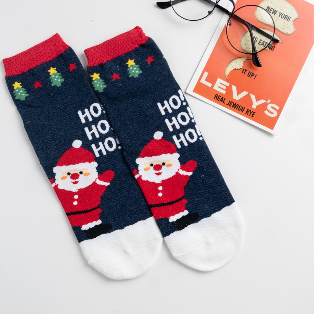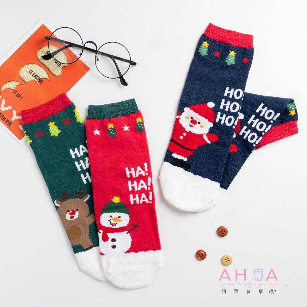 AHUA阿華有事嗎 韓國襪子HO!HA!襪口拼色聖誕人物打招呼中筒襪 K1922 韓妞必備 百搭純棉襪 聖誕襪 交換禮物深藍底聖誕老人|綠底麋鹿|紅底雪人SocksAHUA 韓國襪子品牌旗艦店