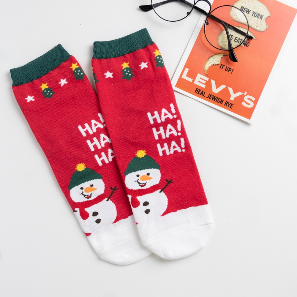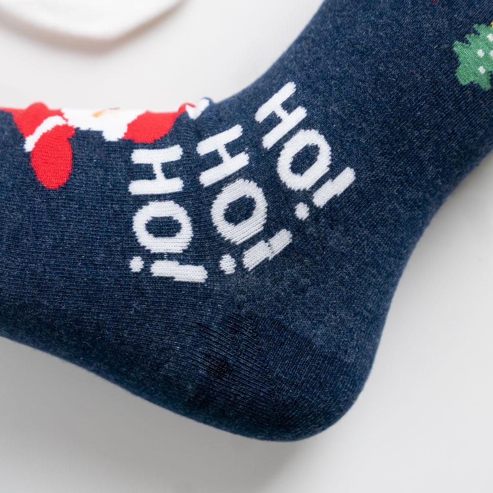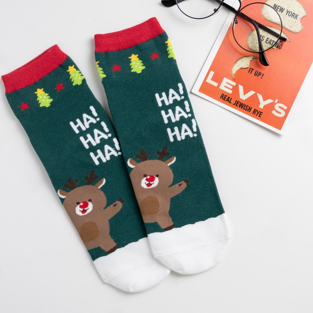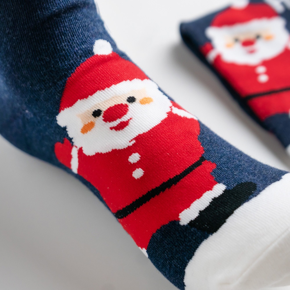AHUA阿華有事嗎 韓國襪子HO!HA!襪口拼色聖誕人物打招呼中筒襪 K1922 韓妞必備 百搭純棉襪 聖誕襪 交換禮物深藍底聖誕老人|綠底麋鹿|紅底雪人SocksAHUA 韓國襪子品牌旗艦店