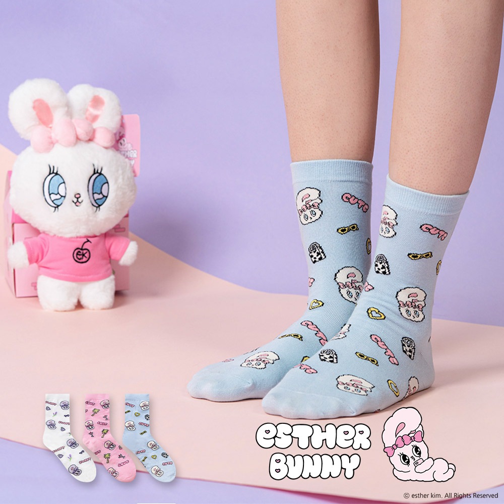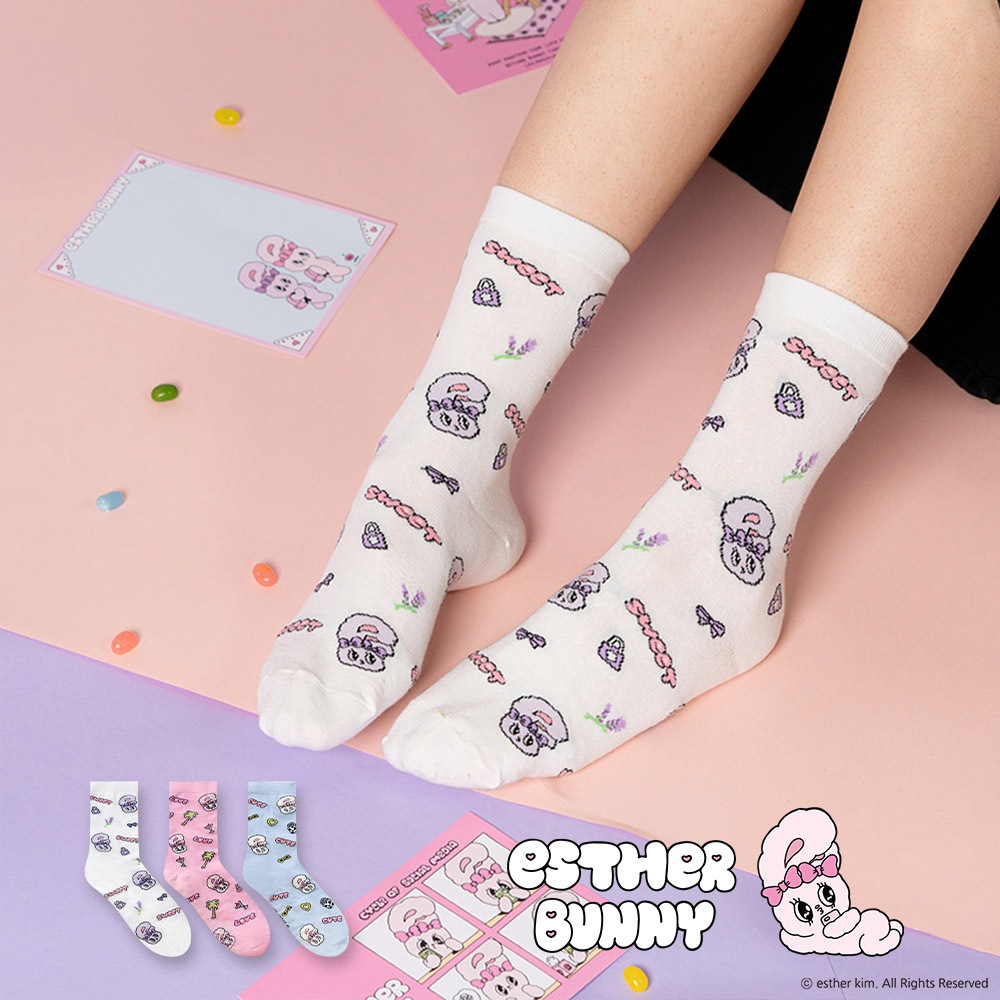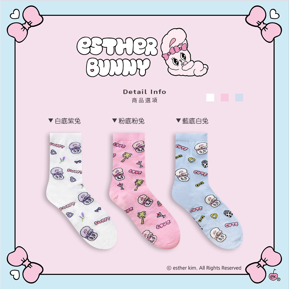 AHUA 艾絲樂小兔聯名-滿版英文配件中筒襪 女生襪子 R0021 純棉中筒襪 MIT台灣製造 阿華有事嗎粉底粉兔🎀|藍底白兔✨|白底紫兔💜SocksAHUA 韓國襪子品牌旗艦店