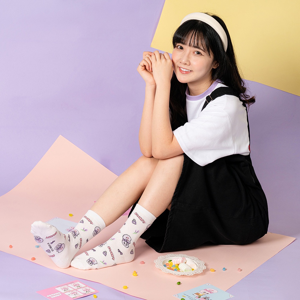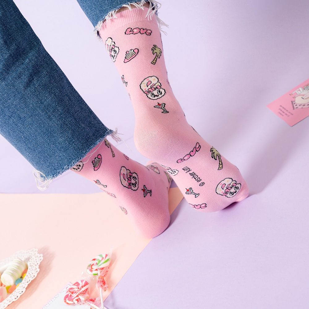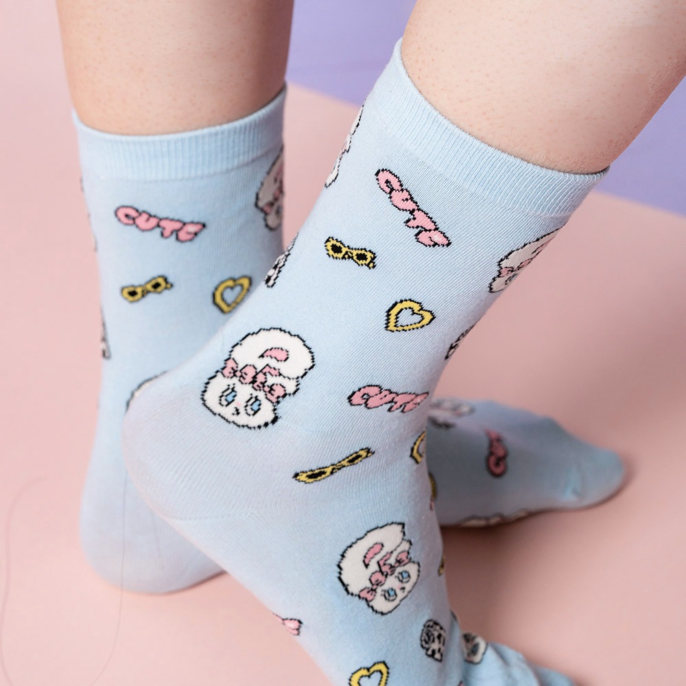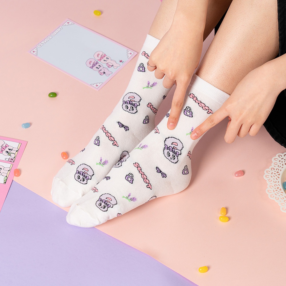 AHUA 艾絲樂小兔聯名-滿版英文配件中筒襪 女生襪子 R0021 純棉中筒襪 MIT台灣製造 阿華有事嗎粉底粉兔🎀|藍底白兔✨|白底紫兔💜SocksAHUA 韓國襪子品牌旗艦店