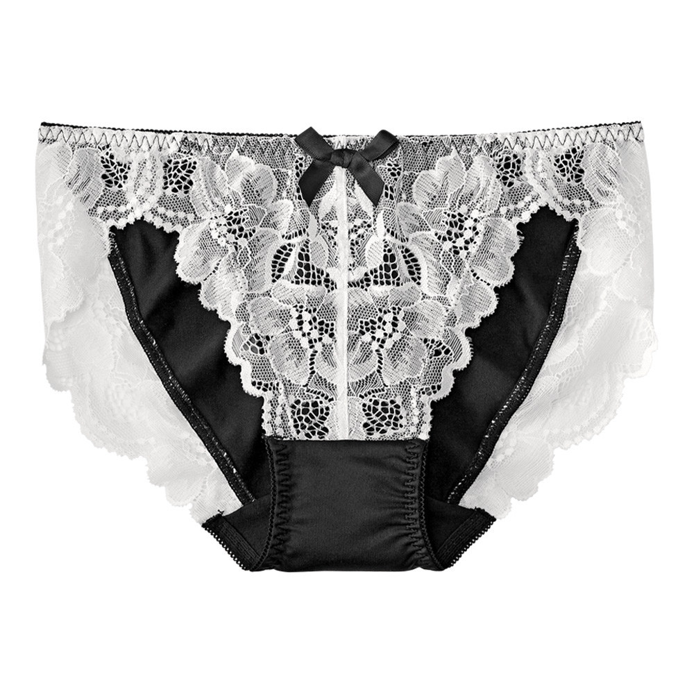 淑女交叉蕾絲花卉圖案性感三角內褲2-黑色2-603722-BL2M|L|LLPantiesaimerfeel