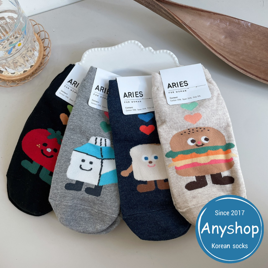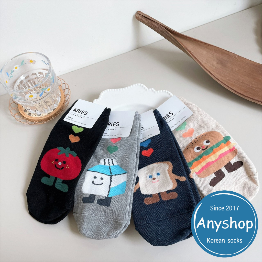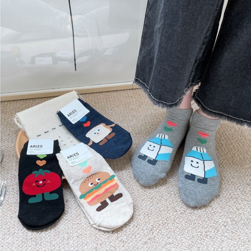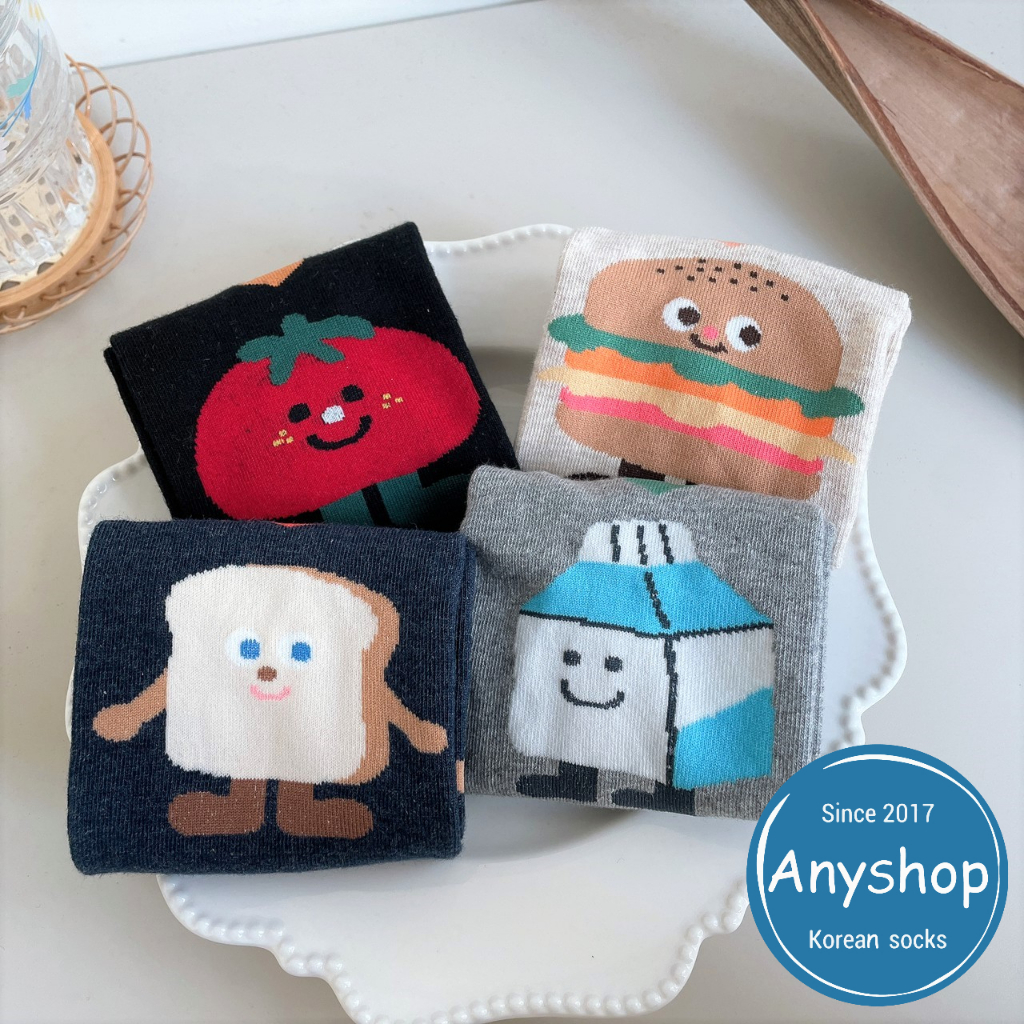 Anyshop韓國襪 食物襪系列 食物襪 短襪 甜甜圈 番茄 漢堡 吐司 牛奶 文青系列 86401黑底番茄【86401】|灰底牛奶【86401】|深藍底吐司【86401】|米底漢堡【86401】SocksAnyshop韓國襪專賣 | 零售 | 團購 | 批發