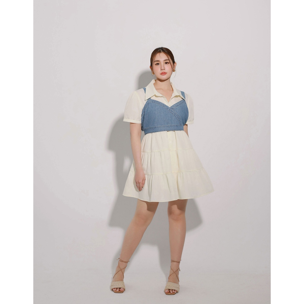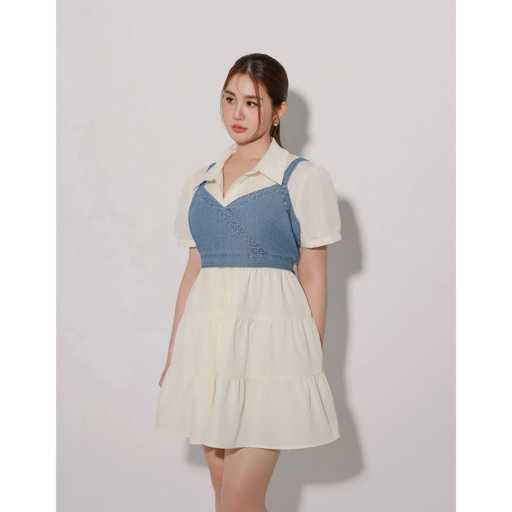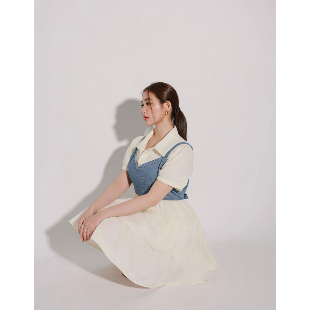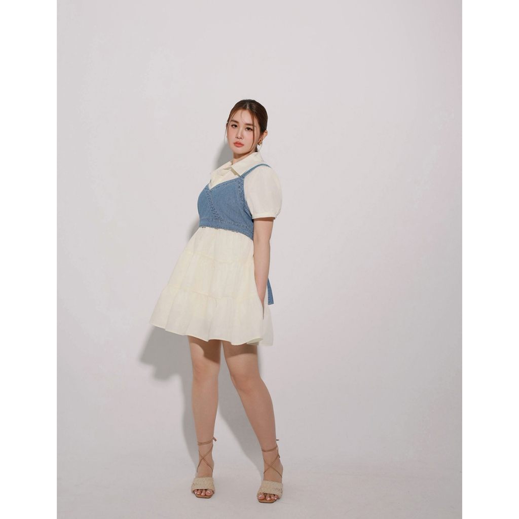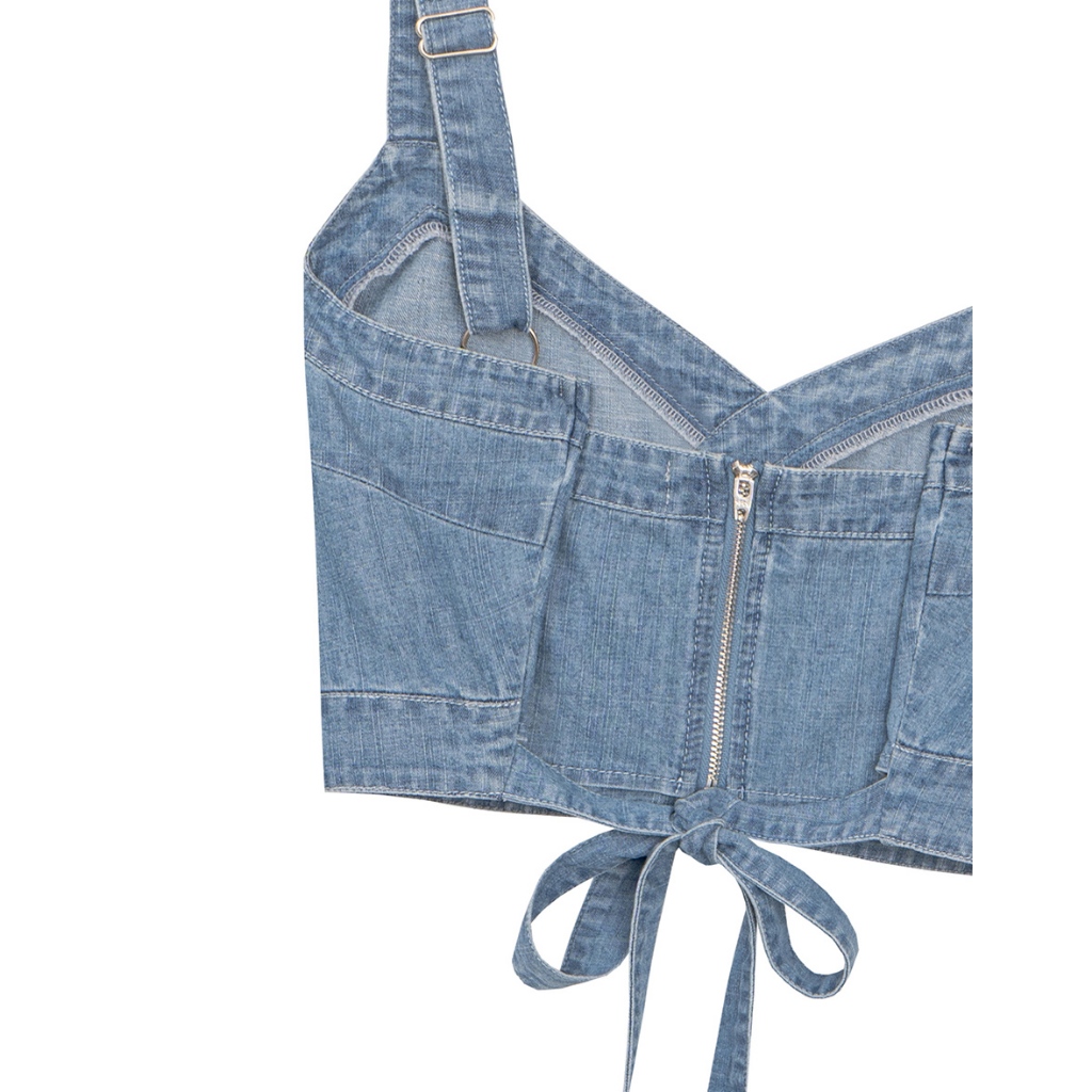 AIR SPACE PLUS 交叉拼接後綁帶短版牛仔背心(藍) 女裝 現貨 大尺碼 中大尺碼藍,XL|藍,2XL|藍,3XLVestsAIR SPACE