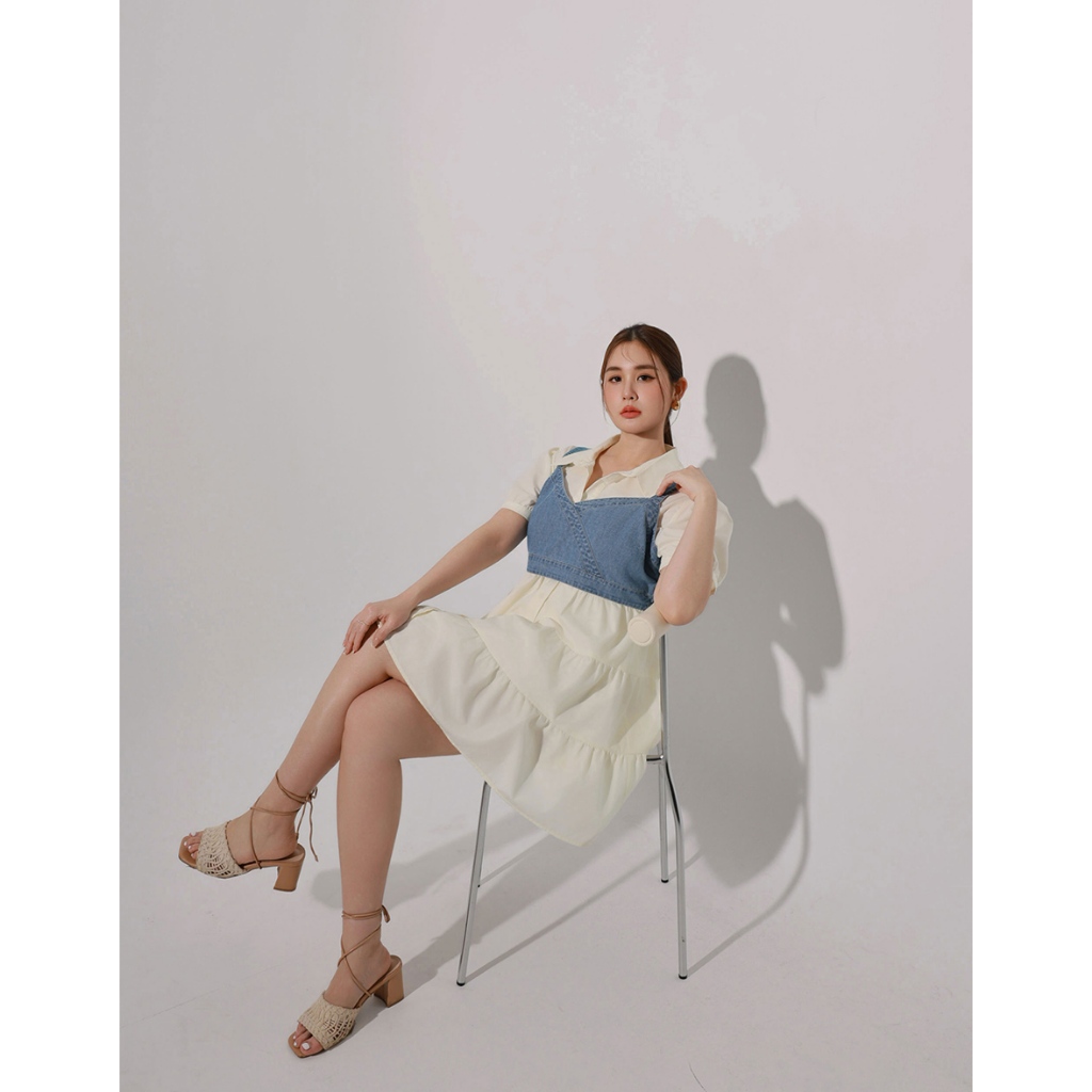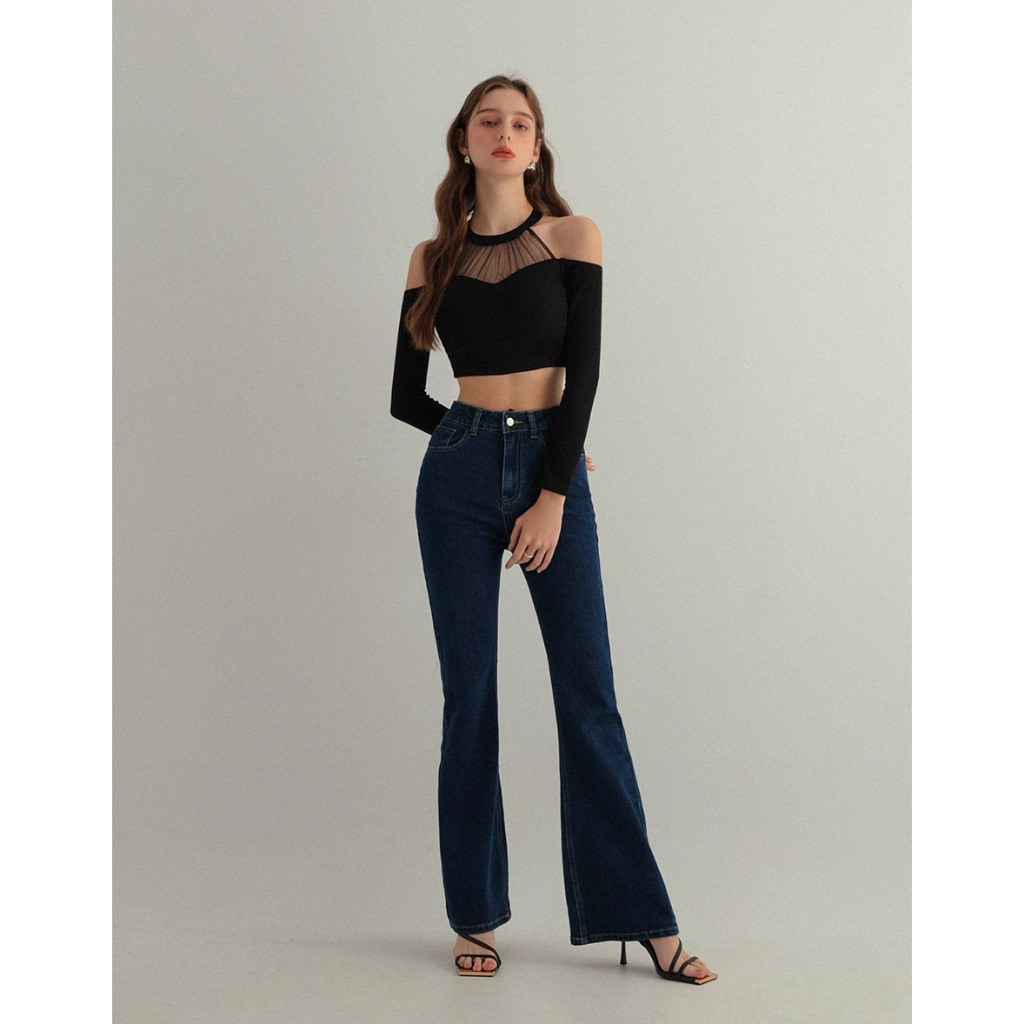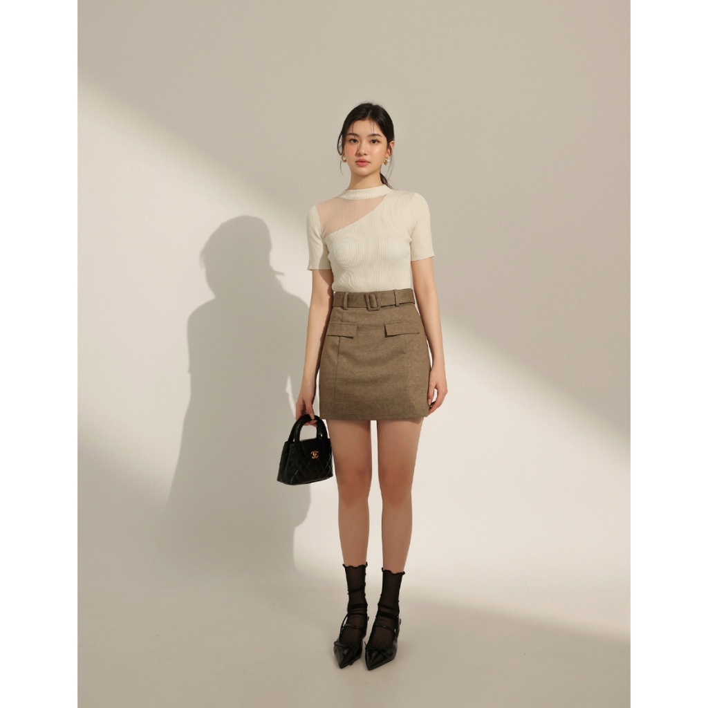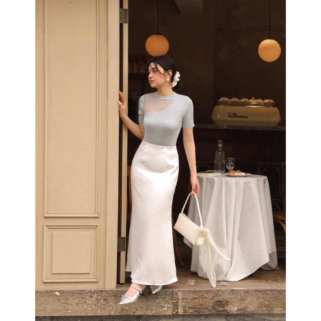 CHIC A SPACE 透膚拼接設計感針織上衣(藍/米白) 女裝 現貨