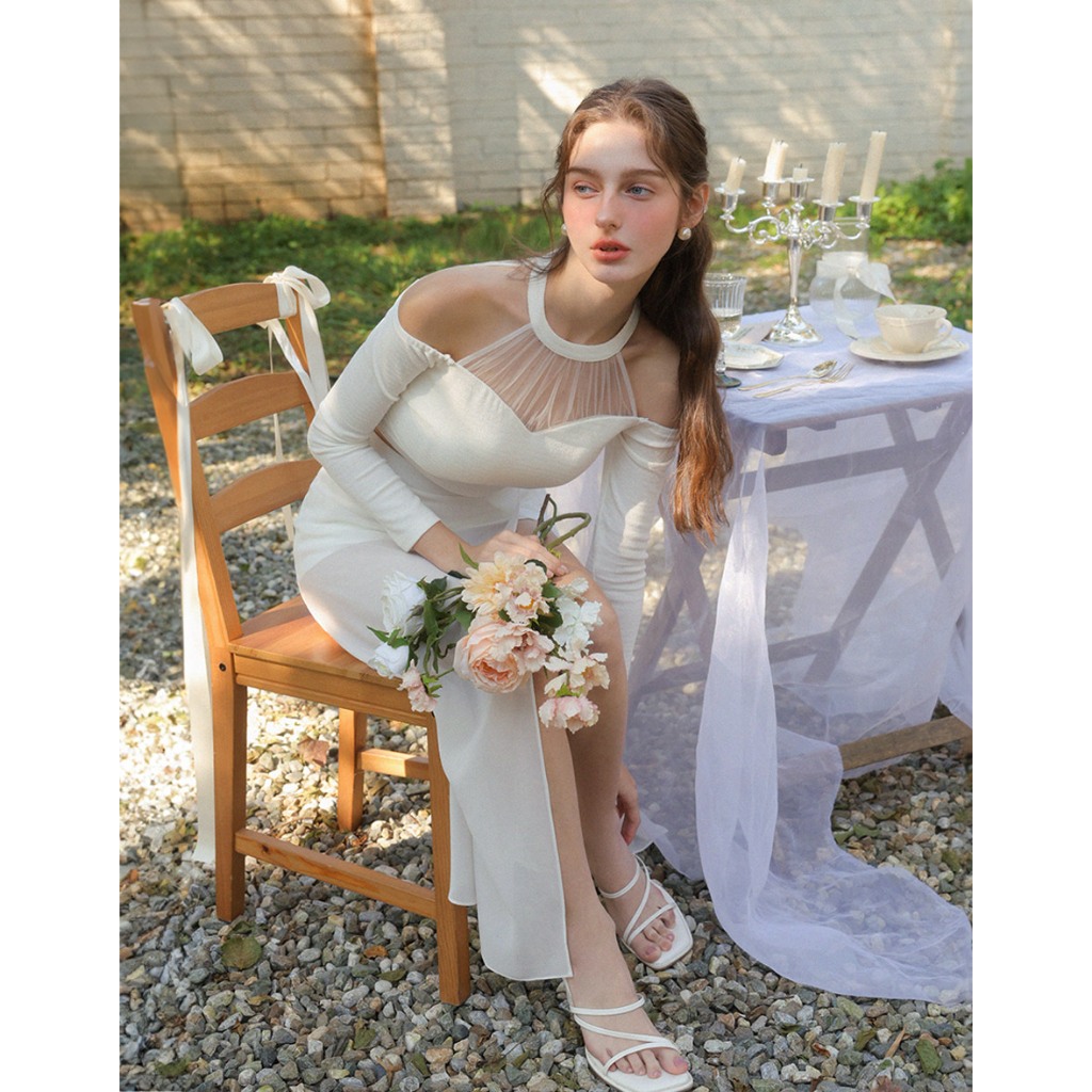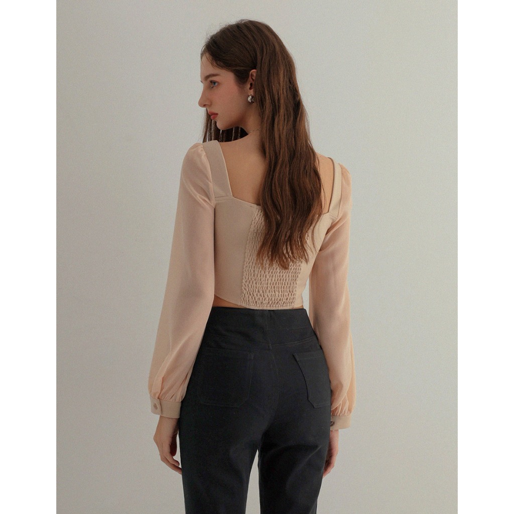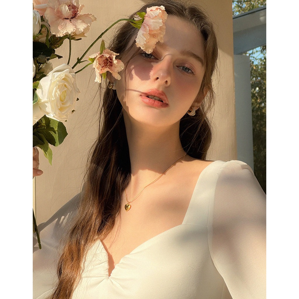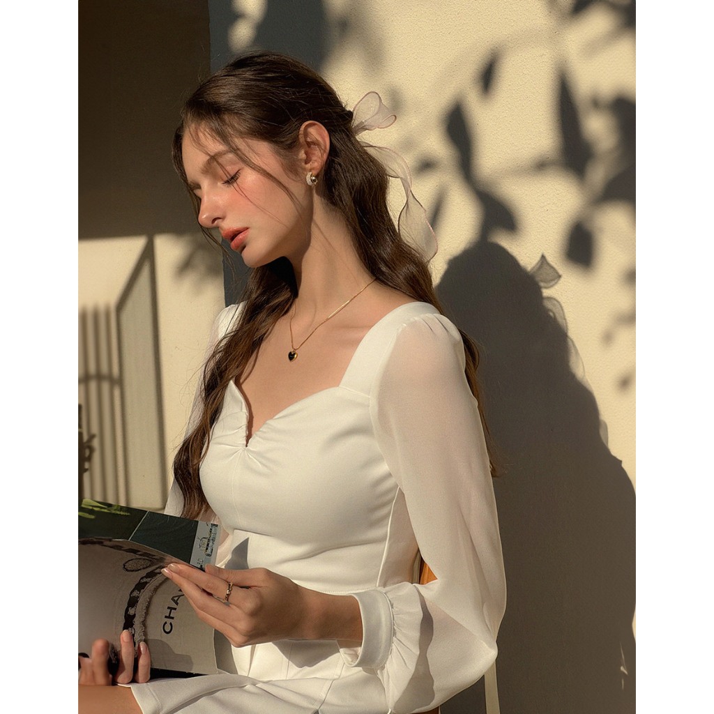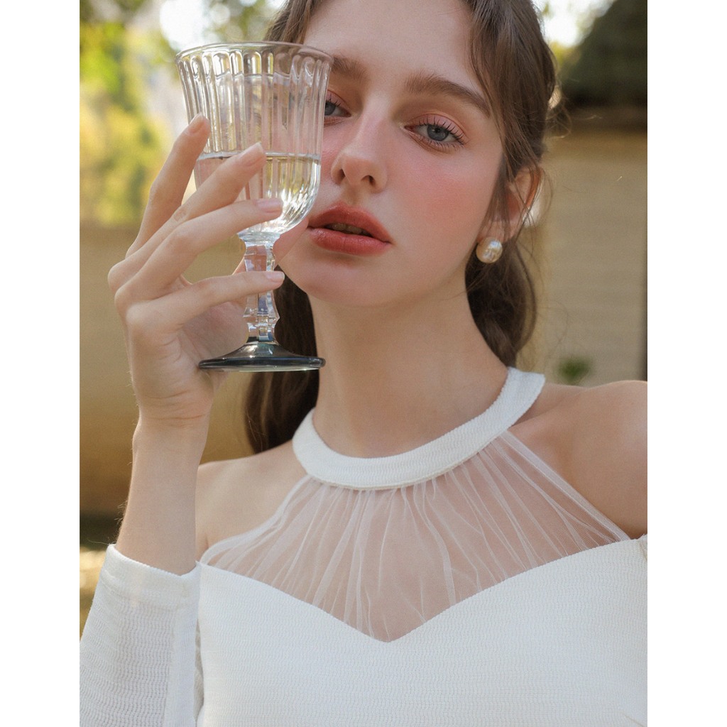 AIR SPACE 桃心領透膚拼接上衣(白/杏) 女裝 現貨白,S|白,M|白,L|杏,S|杏,M|杏,LOthersAIR SPACE