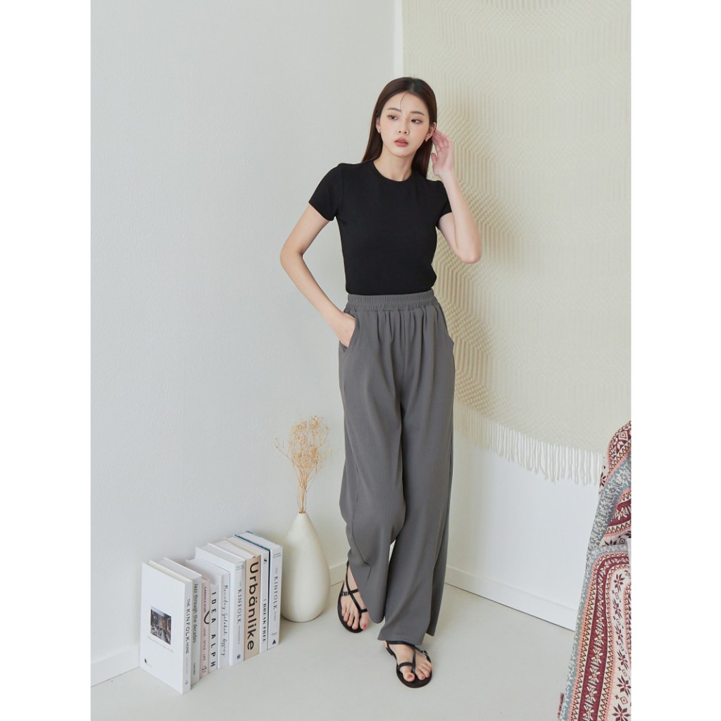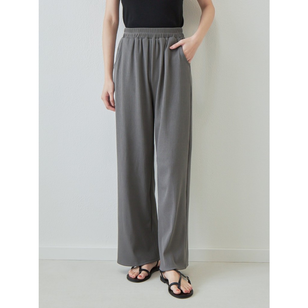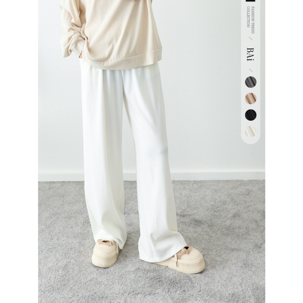 BAi白媽媽 坑條寬褲/鬆緊腰垂感直筒褲-台灣現貨 隔日到貨【350001】黑(02)|灰(10)|卡(11)|白_透(01)PantsBAi白媽媽 品牌旗艦店
