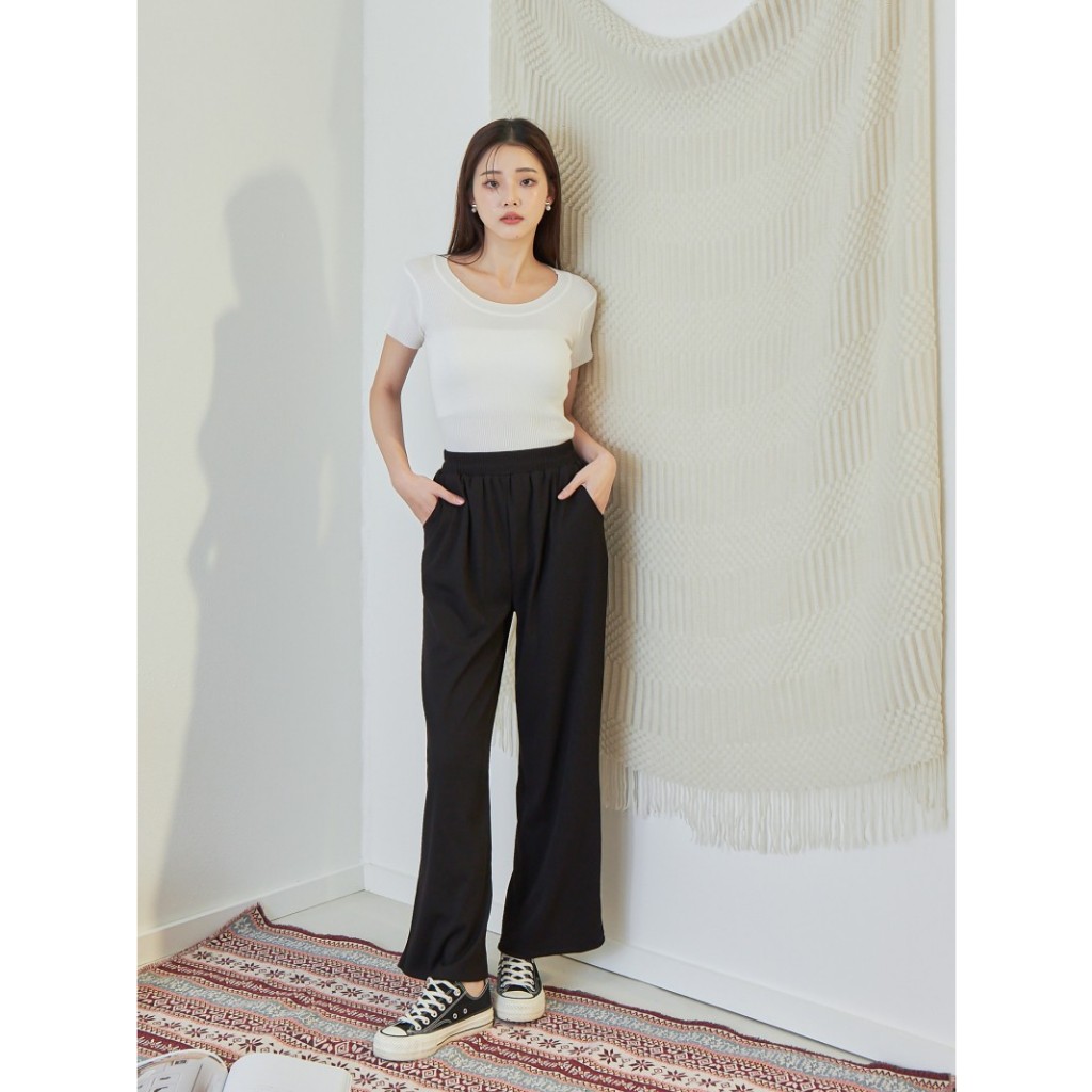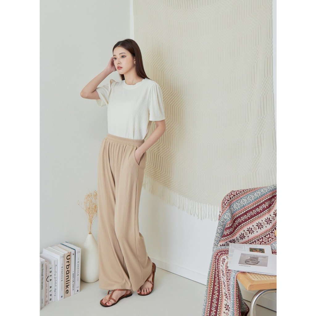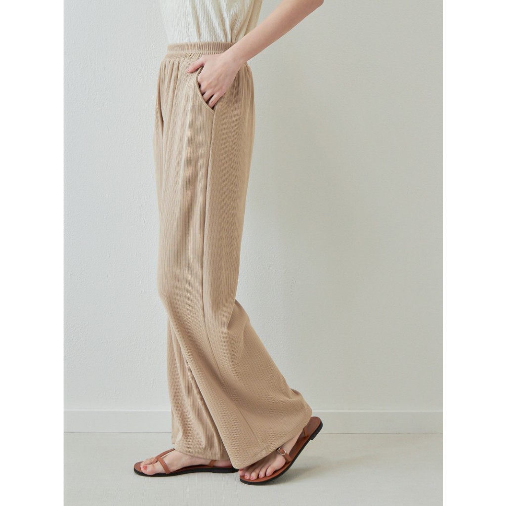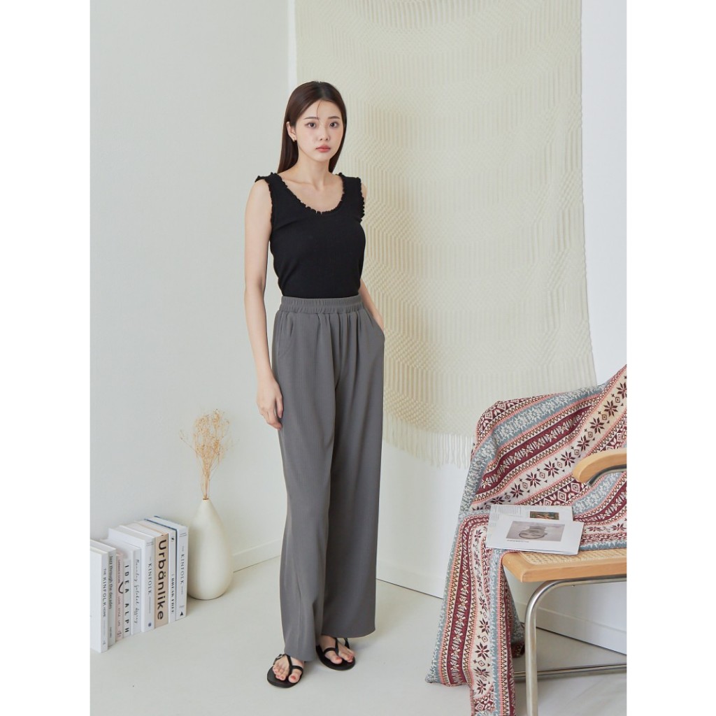 BAi白媽媽 坑條寬褲/鬆緊腰垂感直筒褲-台灣現貨 隔日到貨【350001】黑(02)|灰(10)|卡(11)|白_透(01)PantsBAi白媽媽 品牌旗艦店