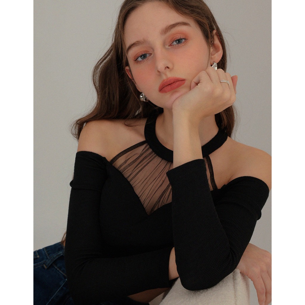 AIR SPACE 繞頸透膚挖肩上衣(附胸墊)(黑/白) 女裝 現貨黑,S|黑,M|黑,L|白,S|白,M|白,LOthersAIR SPACE